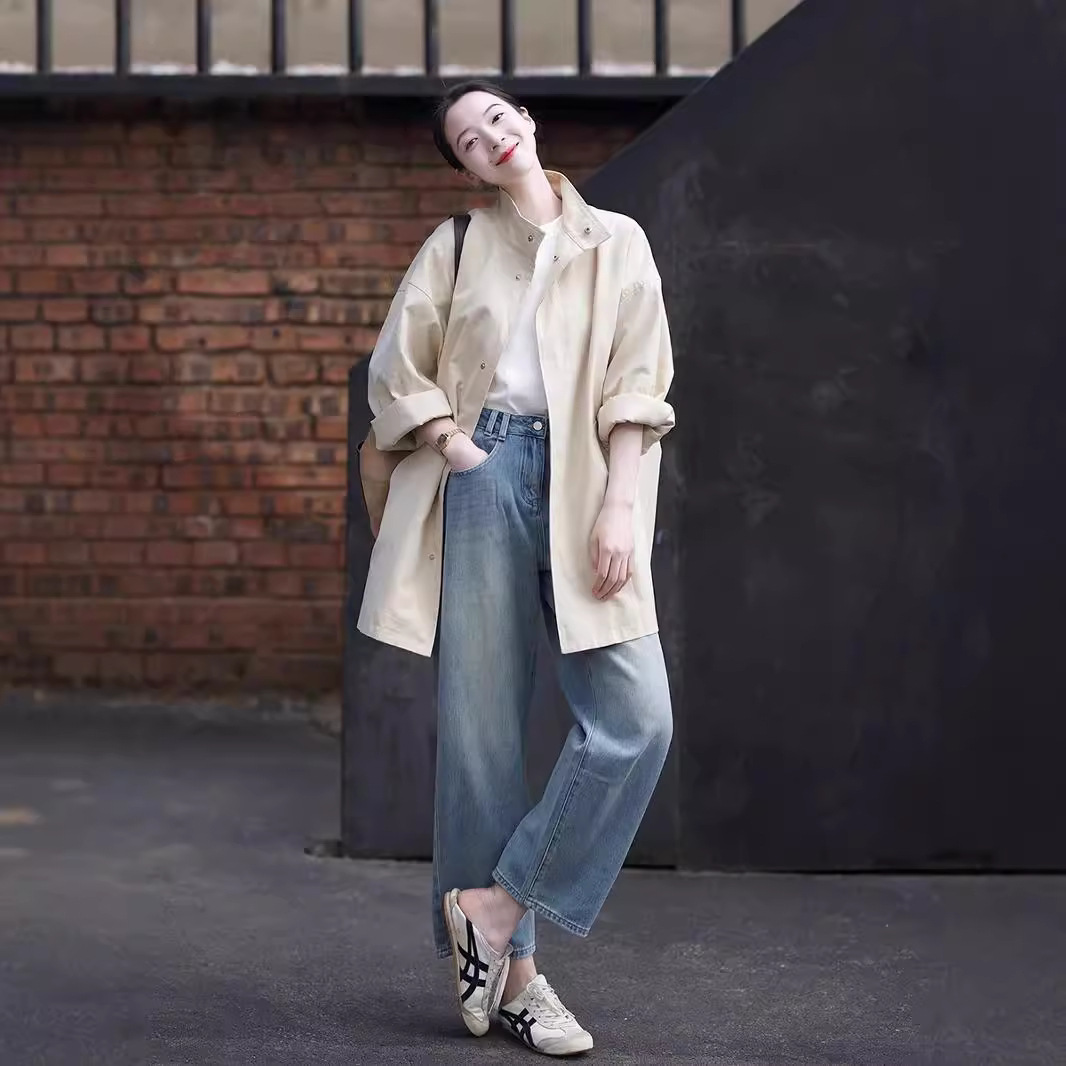 일본 트렌치 코트 2024 봄과 가을 새로운 스타일 작은 하이 엔드 슈퍼 잘 생긴 한국 인기 캐주얼 코트 여성 코트스토어 가기