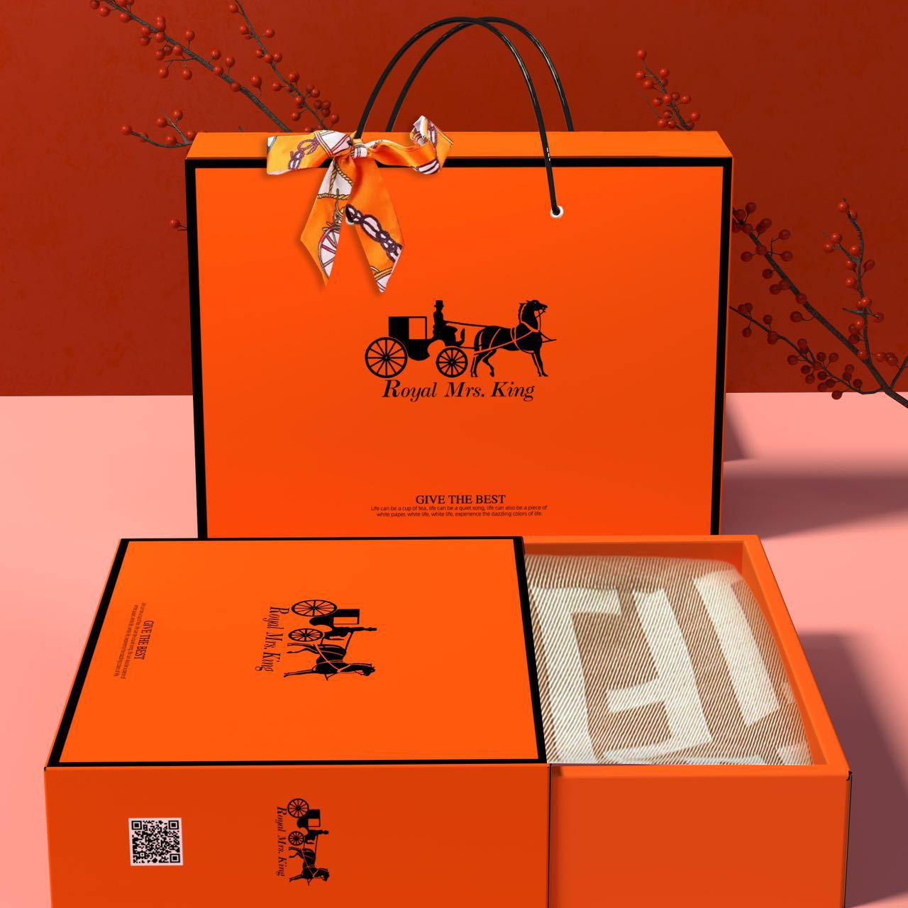 高品质加大加厚 烫金 爱马橙 礼盒装套装
