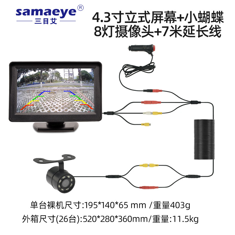 • 4.3inch 스택 스크린 + 작은 나비 카메라 + 7m 연장 케이블