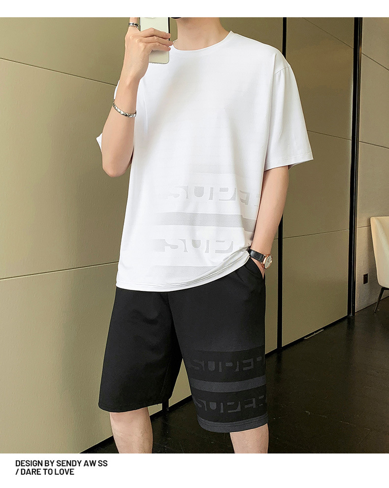 남성용 새로운 반팔 티셔츠 정장 여름 얼음 실크 얇은 잘 생긴 캐주얼 운동복 러닝 속건 반바지 유행