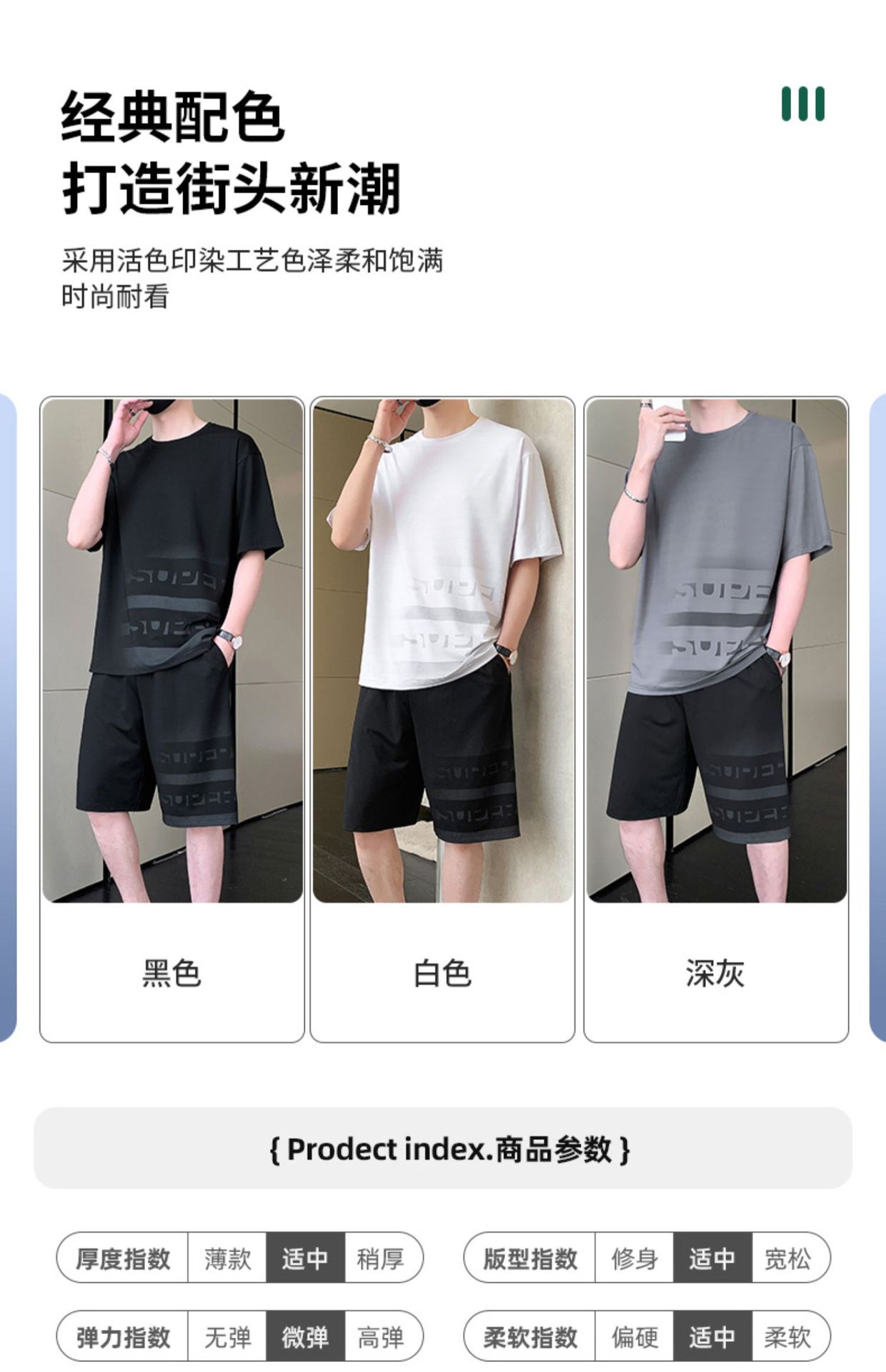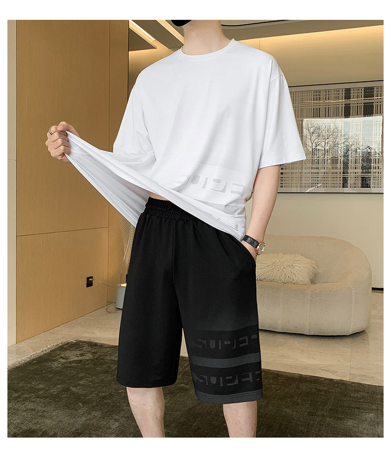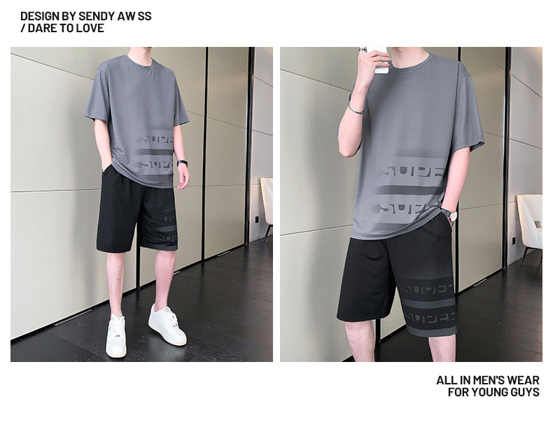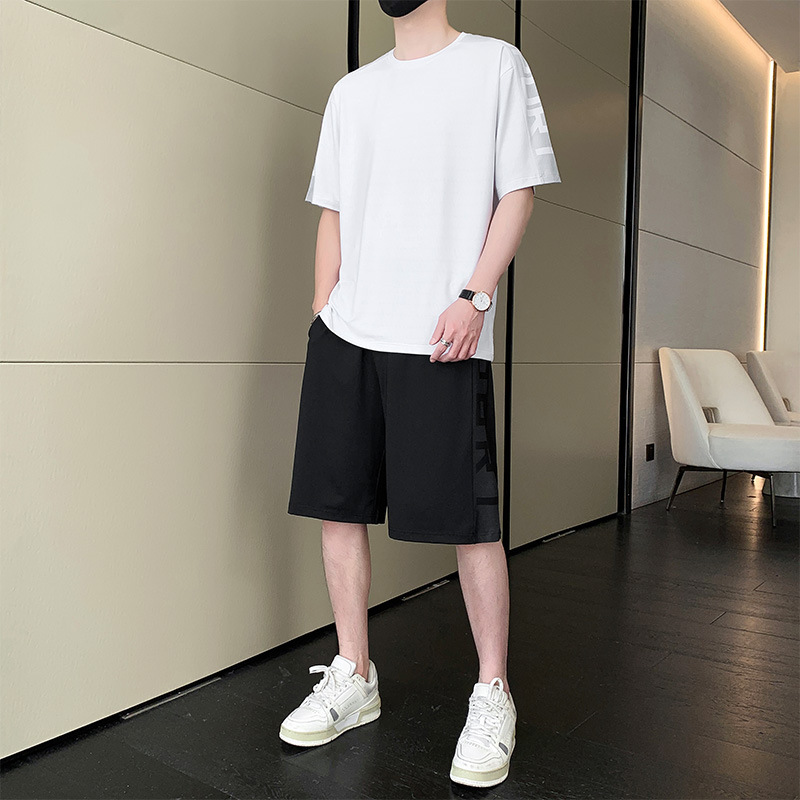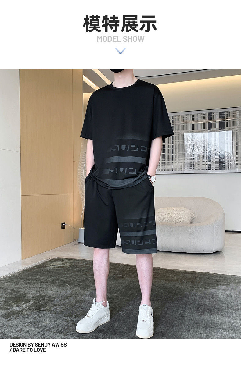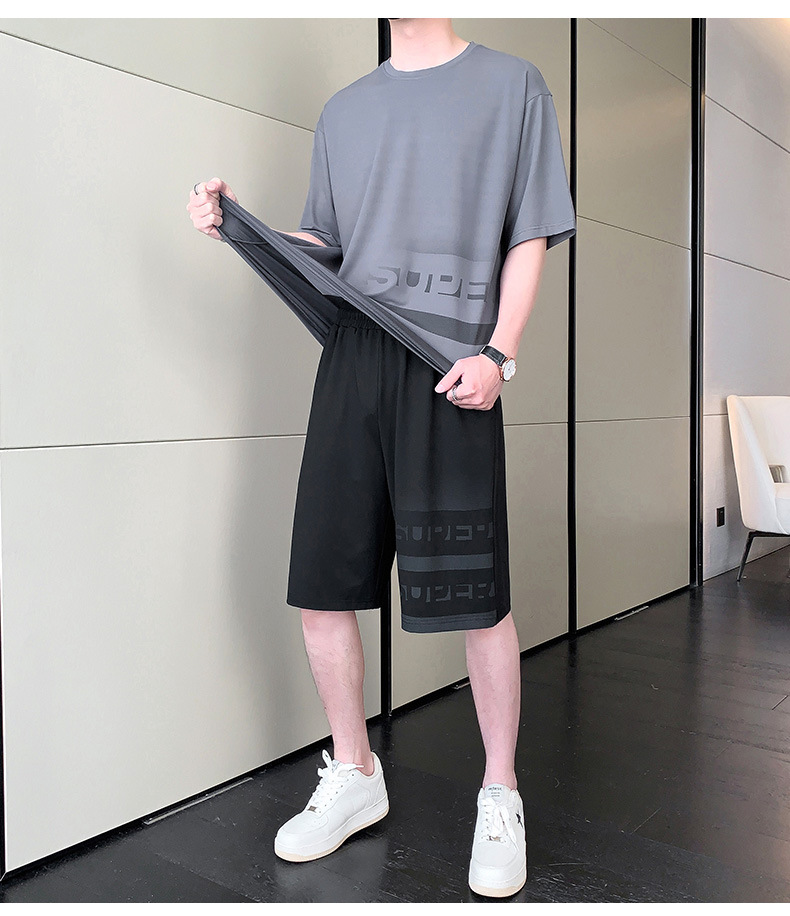 남성용 새로운 반팔 티셔츠 정장 여름 얼음 실크 얇은 잘 생긴 캐주얼 운동복 러닝 속건 반바지 유행스토어 가기