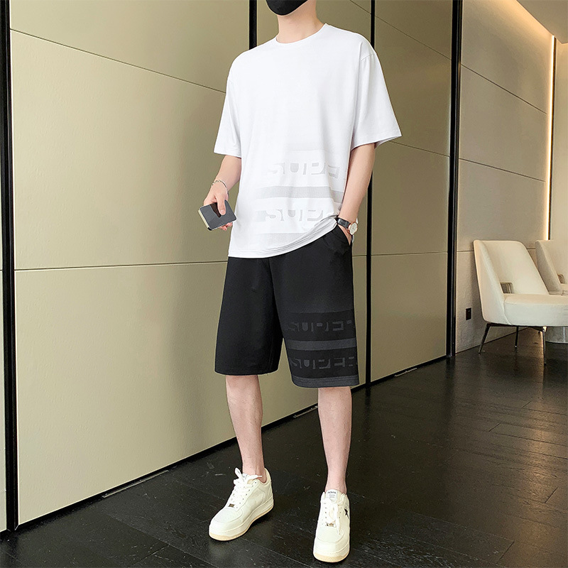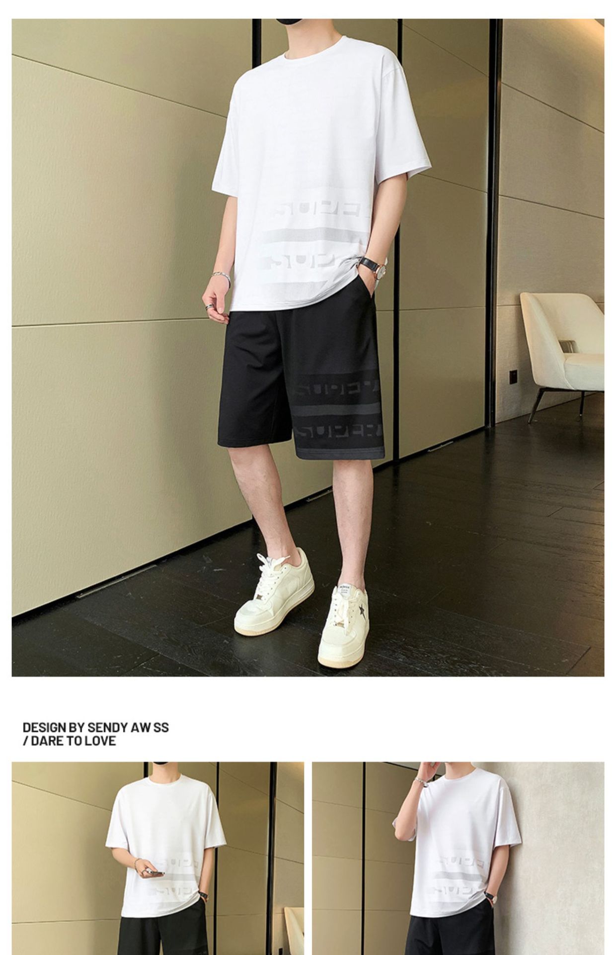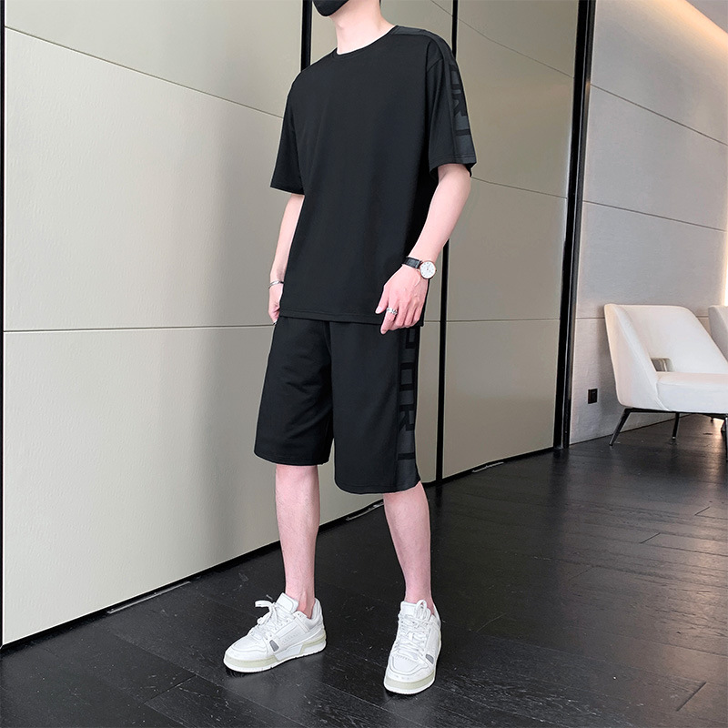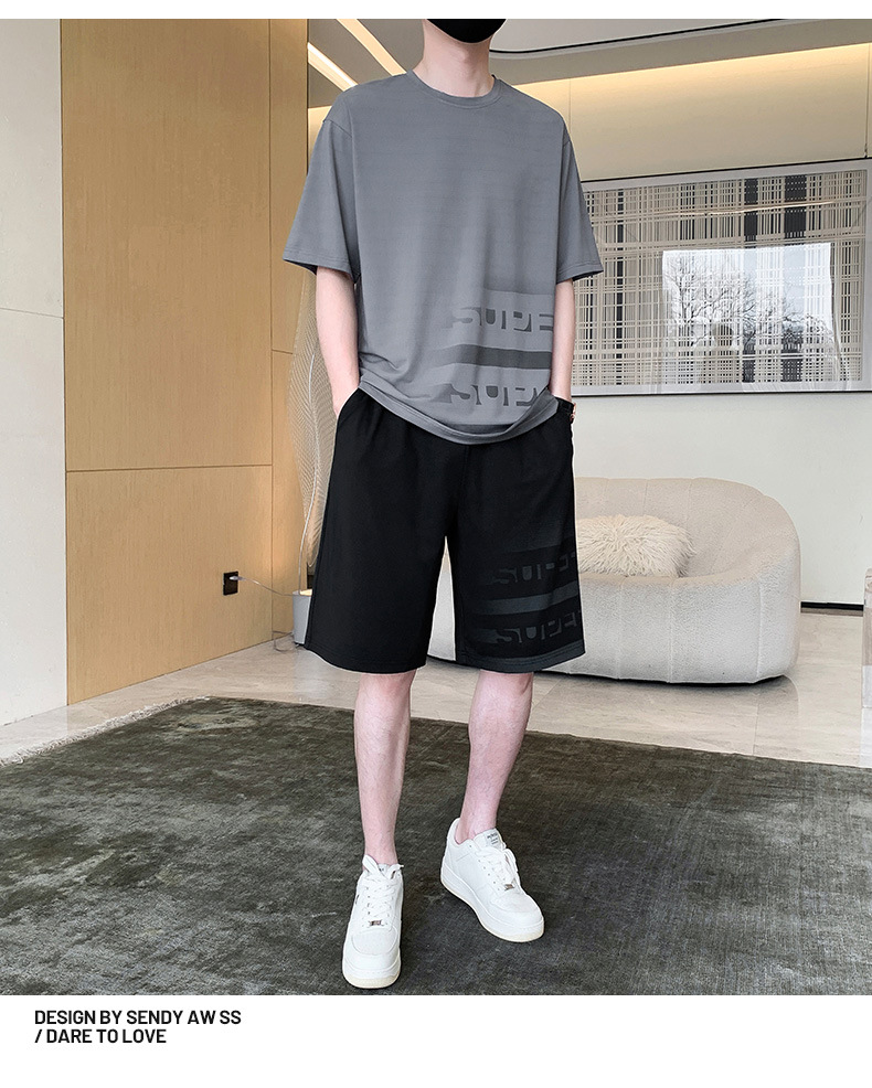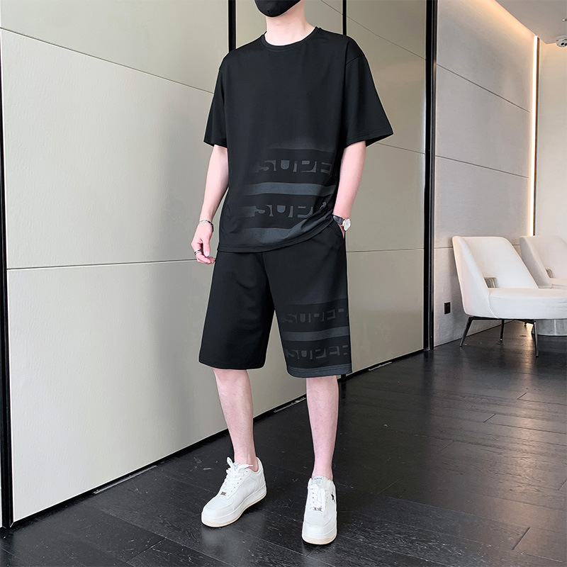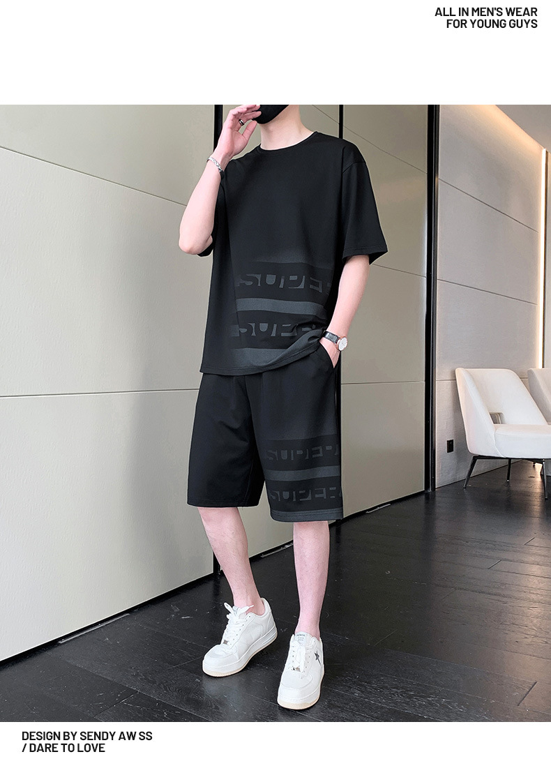남성용 새로운 반팔 티셔츠 정장 여름 얼음 실크 얇은 잘 생긴 캐주얼 운동복 러닝 속건 반바지 유행스토어 가기