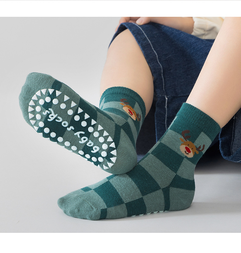 봄과 가을 어린이 양말 디스펜싱 트램폴린 레드 크리스마스 아기 면 양말 중간 길이 양말 만화 안티 슬립 양말 소년 소녀를위한스토어 가기