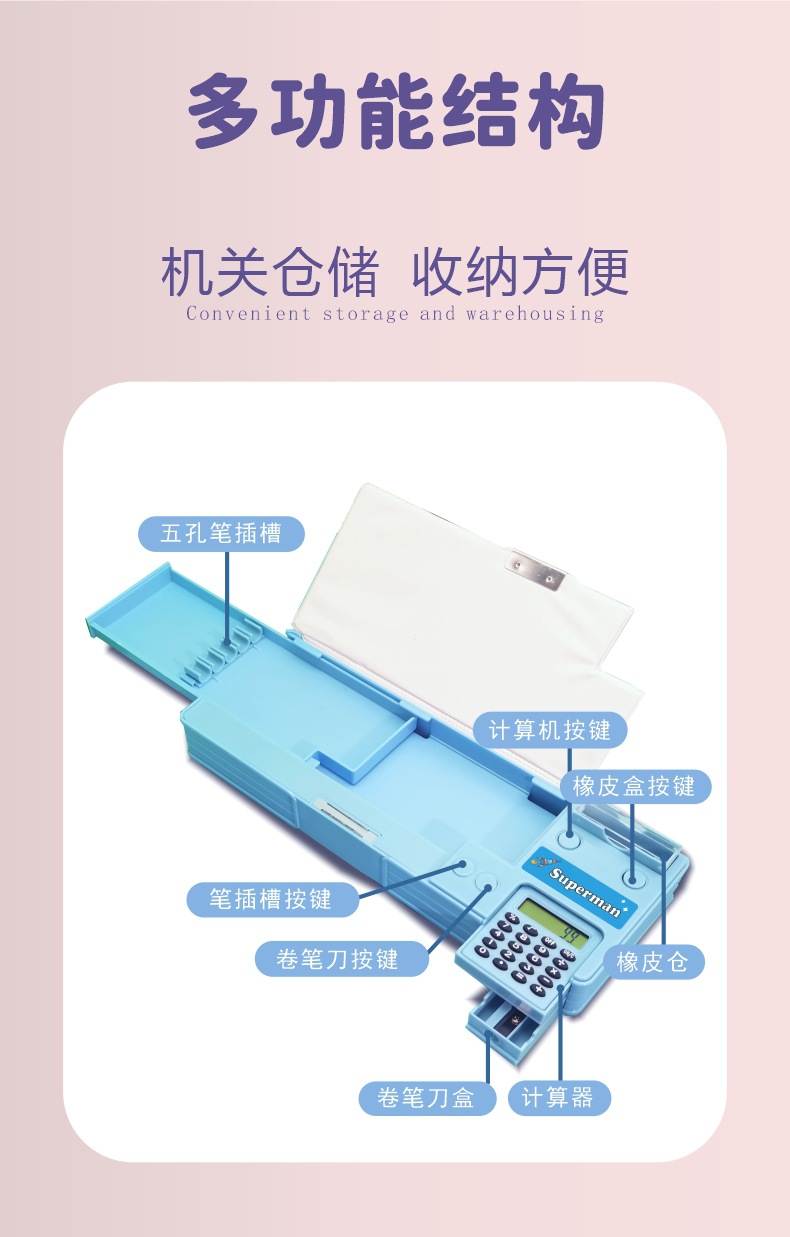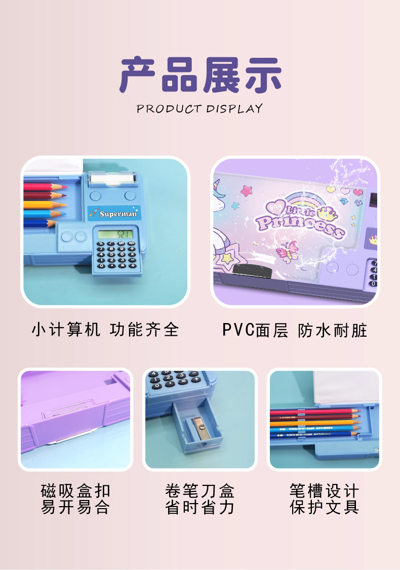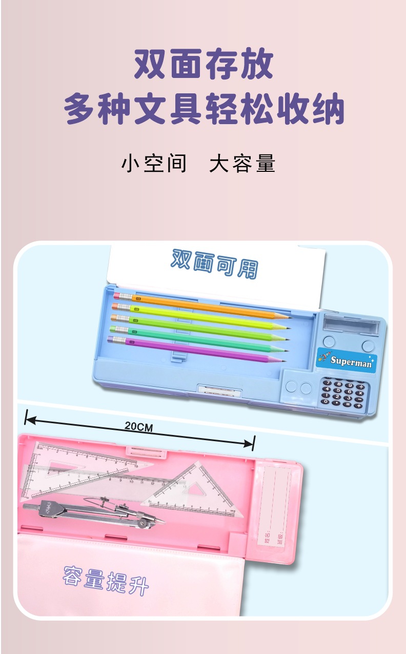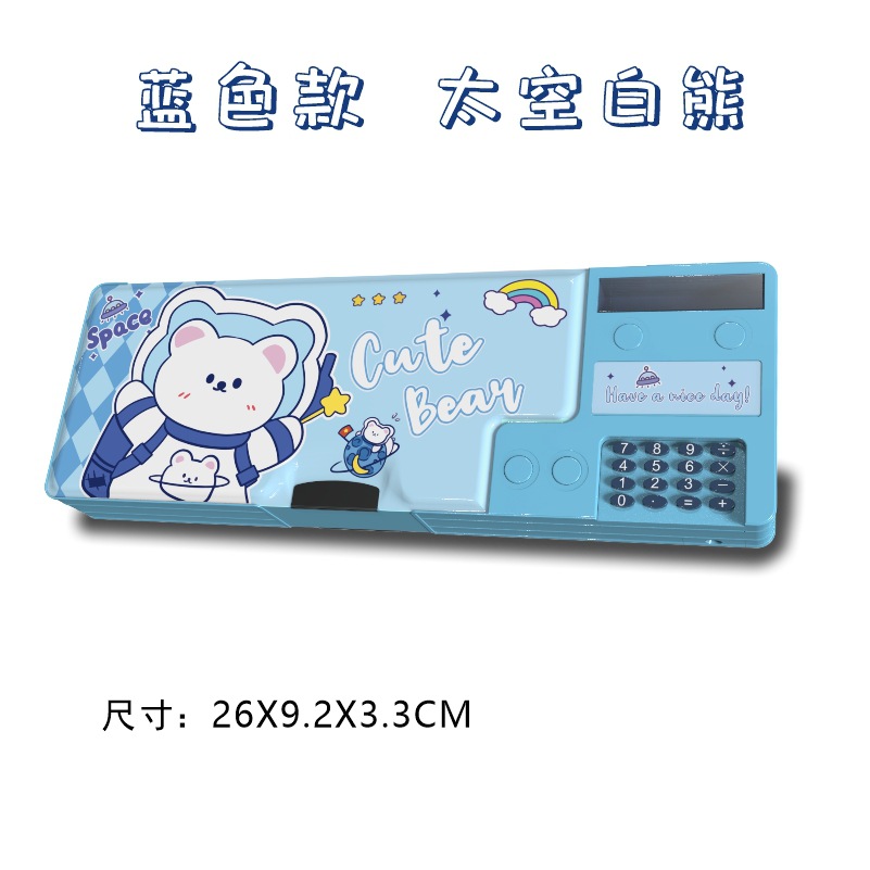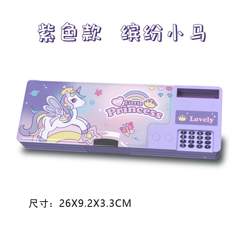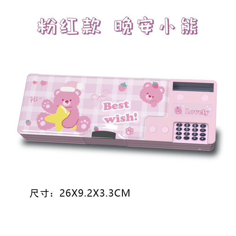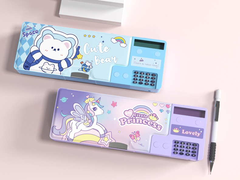 [계산기 포함] 국경을 넘는 개학 시즌 선물 만화 이중층 대용량 학생용 다기능 펜 필통