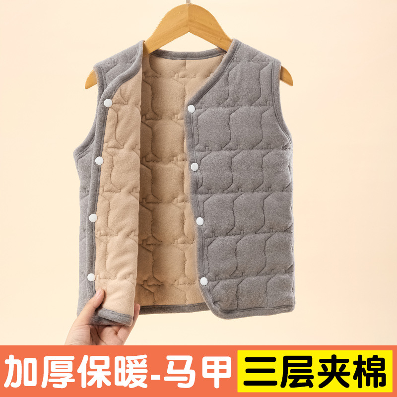 겨울 어린이 교복 보온 조끼 두꺼운 실크 충전 남녀 아동용 면 조끼 도매스토어 가기