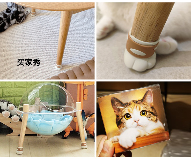 P66D 서리 산 귀여운 고양이의 발톱 의자 발 매트 침묵하는 미끄럼 방지 테이블 및 의자 다리 매트 실리콘 내마모성 발 덮개 의자 다리 보호스토어 가기