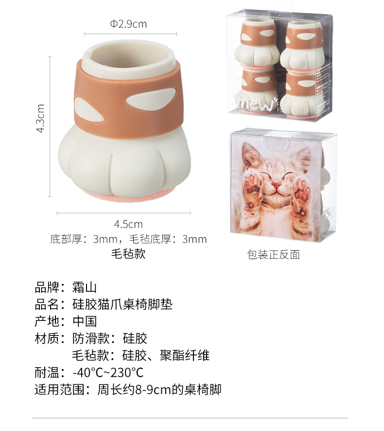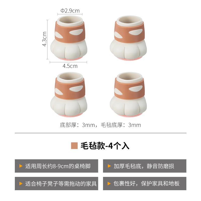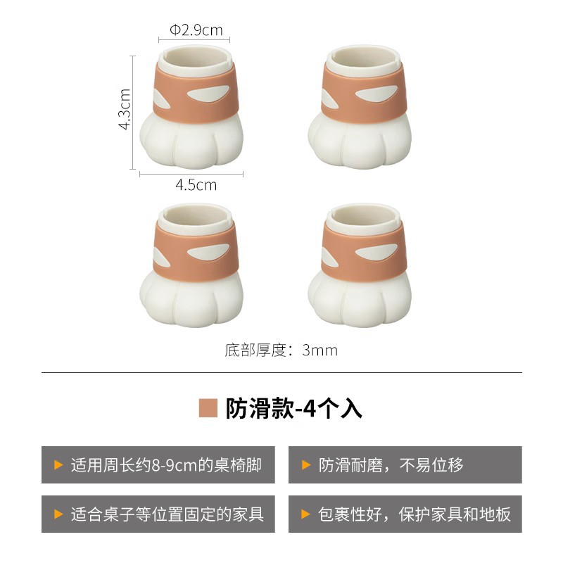 P66D 서리 산 귀여운 고양이의 발톱 의자 발 매트 침묵하는 미끄럼 방지 테이블 및 의자 다리 매트 실리콘 내마모성 발 덮개 의자 다리 보호