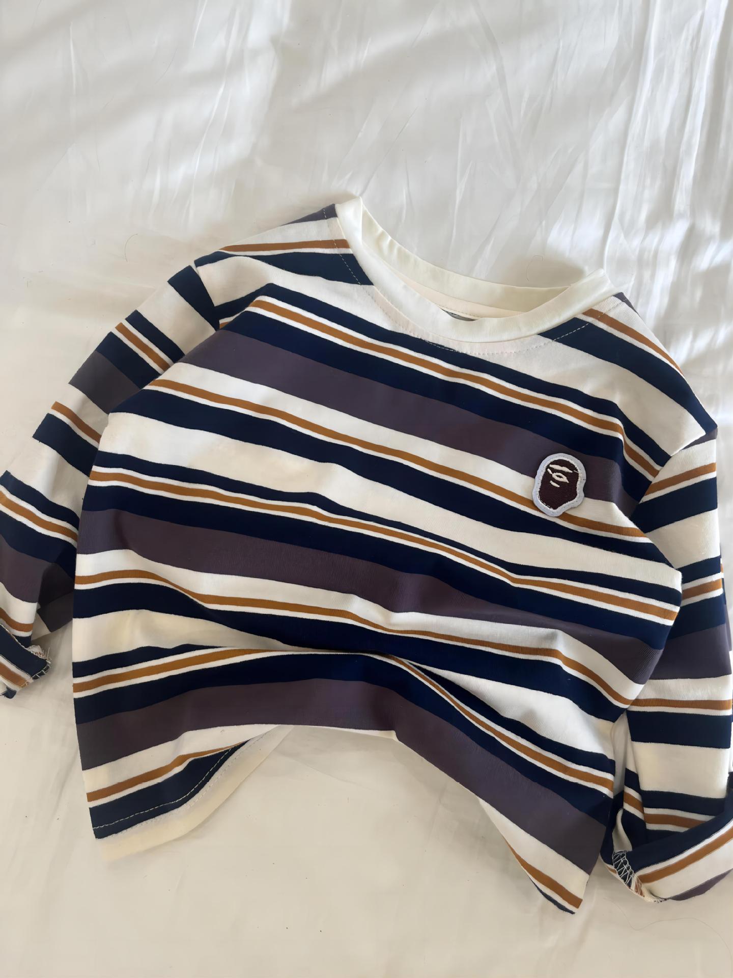 [7A 항균] AINI 어린이 순면 한국 줄무늬 긴 소매 티셔츠 스트레치 중 큰 어린이 면 봄과 가을 탑