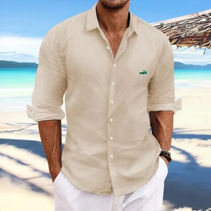 2024 국경 새로운 남성 옷깃 긴 소매 비치 셔츠 면화 핫 세일 ....