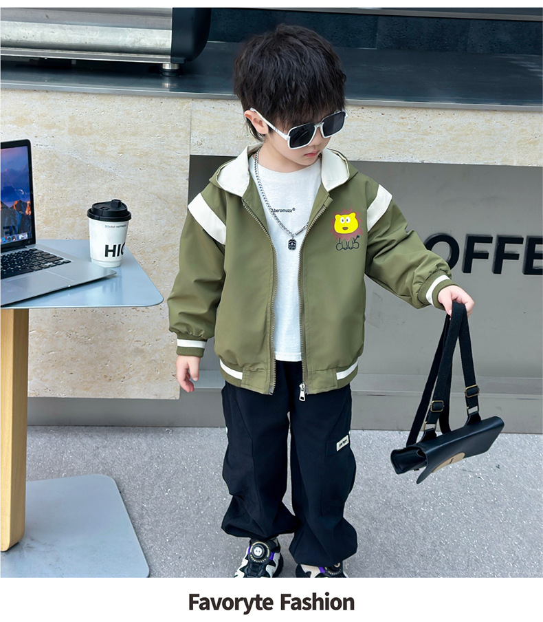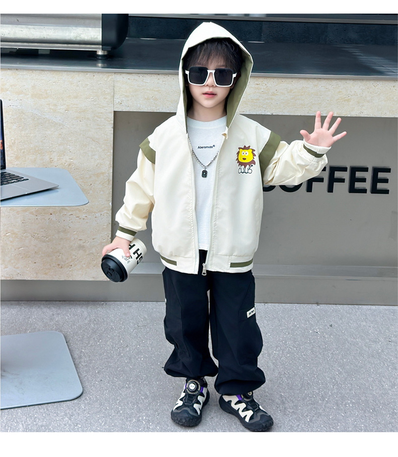 소년 가을 코트 2024 새로운 아기 가을 캐주얼 후드 탑 어린이 유행 어린이 의류 소년 유행 의류스토어 가기