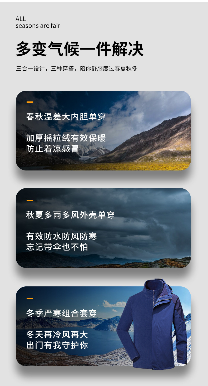 겨울 야외 3 대 1 폭행 의류 맞춤형 기모 두꺼운 극지 양털 따뜻한 방수 작업복 인쇄 로고스토어 가기