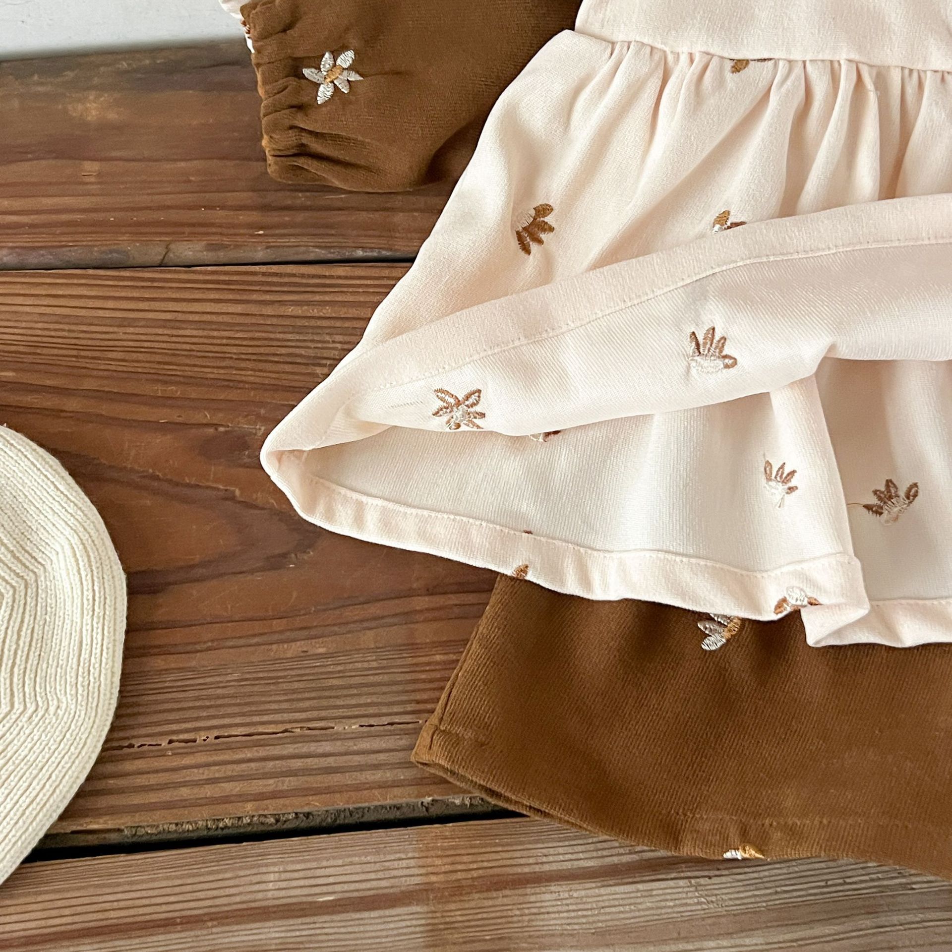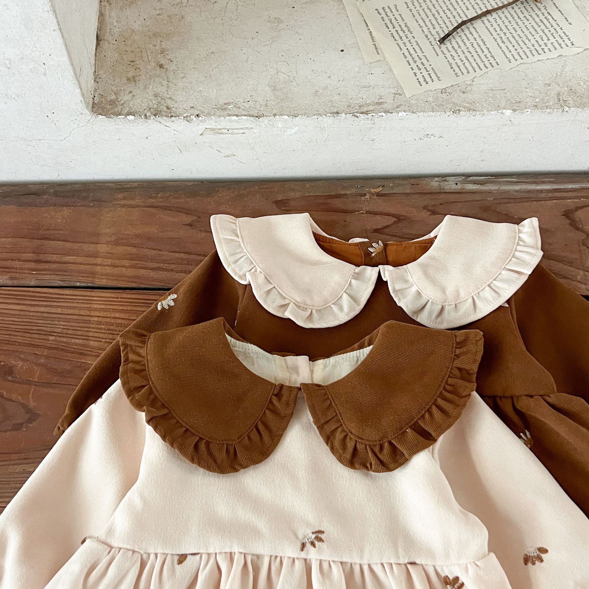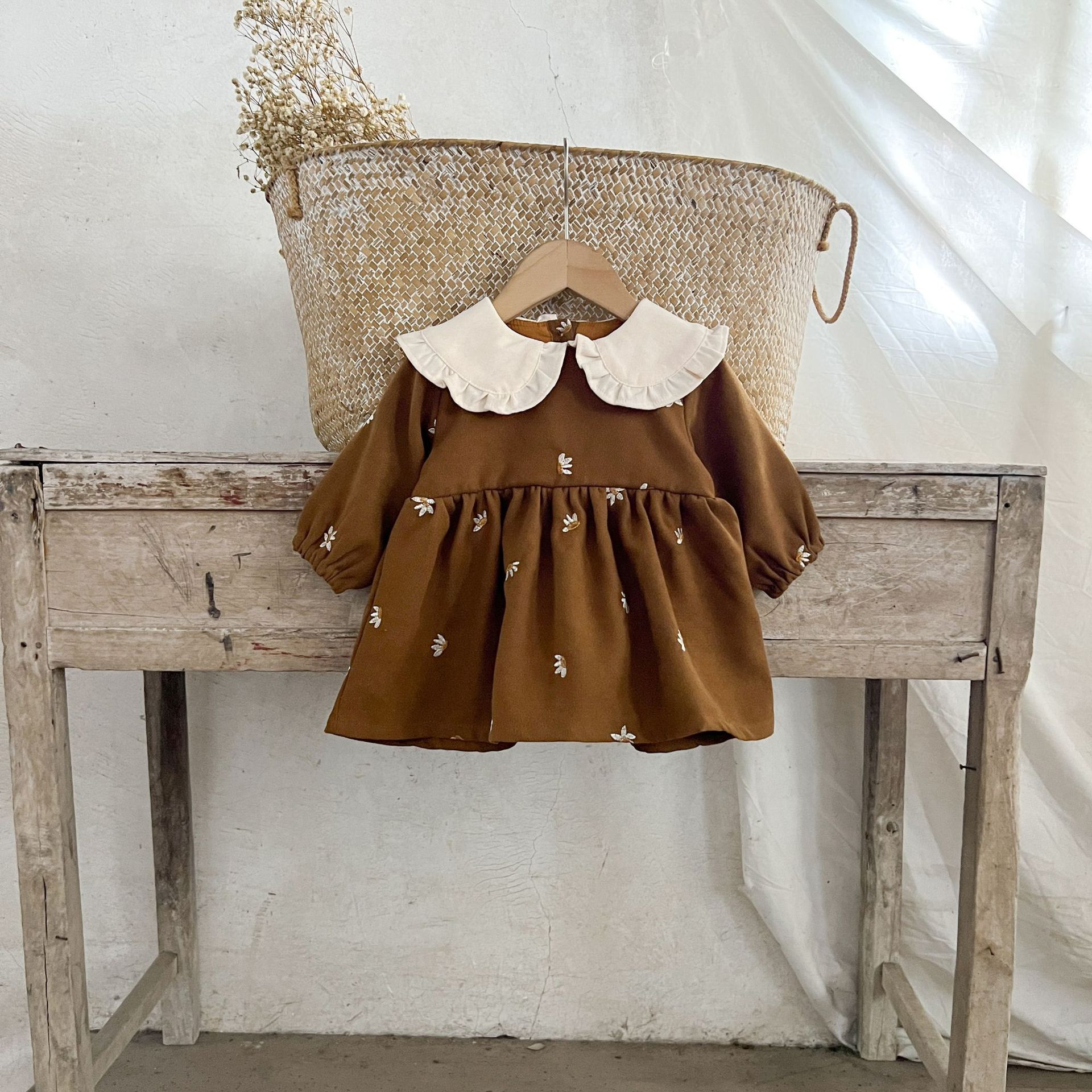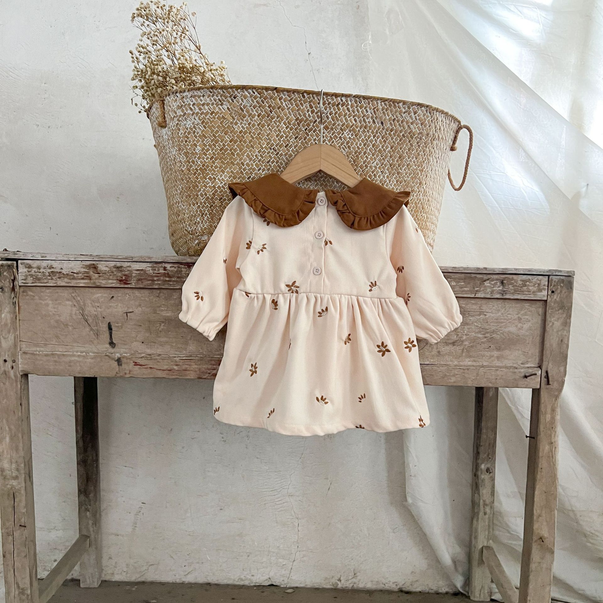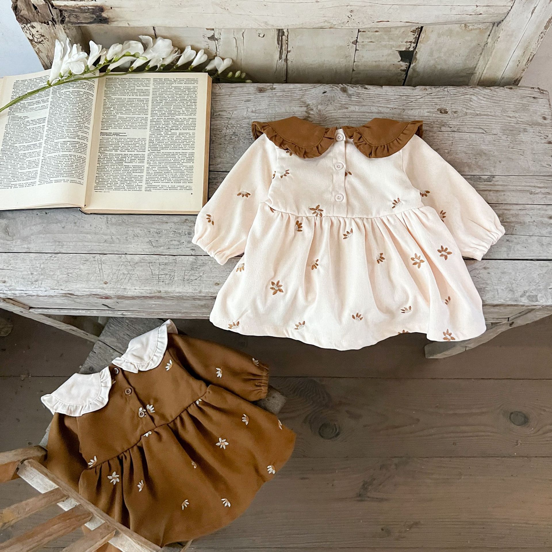 Ins Korean Style Girls 'Pure Cotton 자수 명암 옷깃 원피스 아기와 유아를위한 봄과 가을 캐주얼 원피스스토어 가기