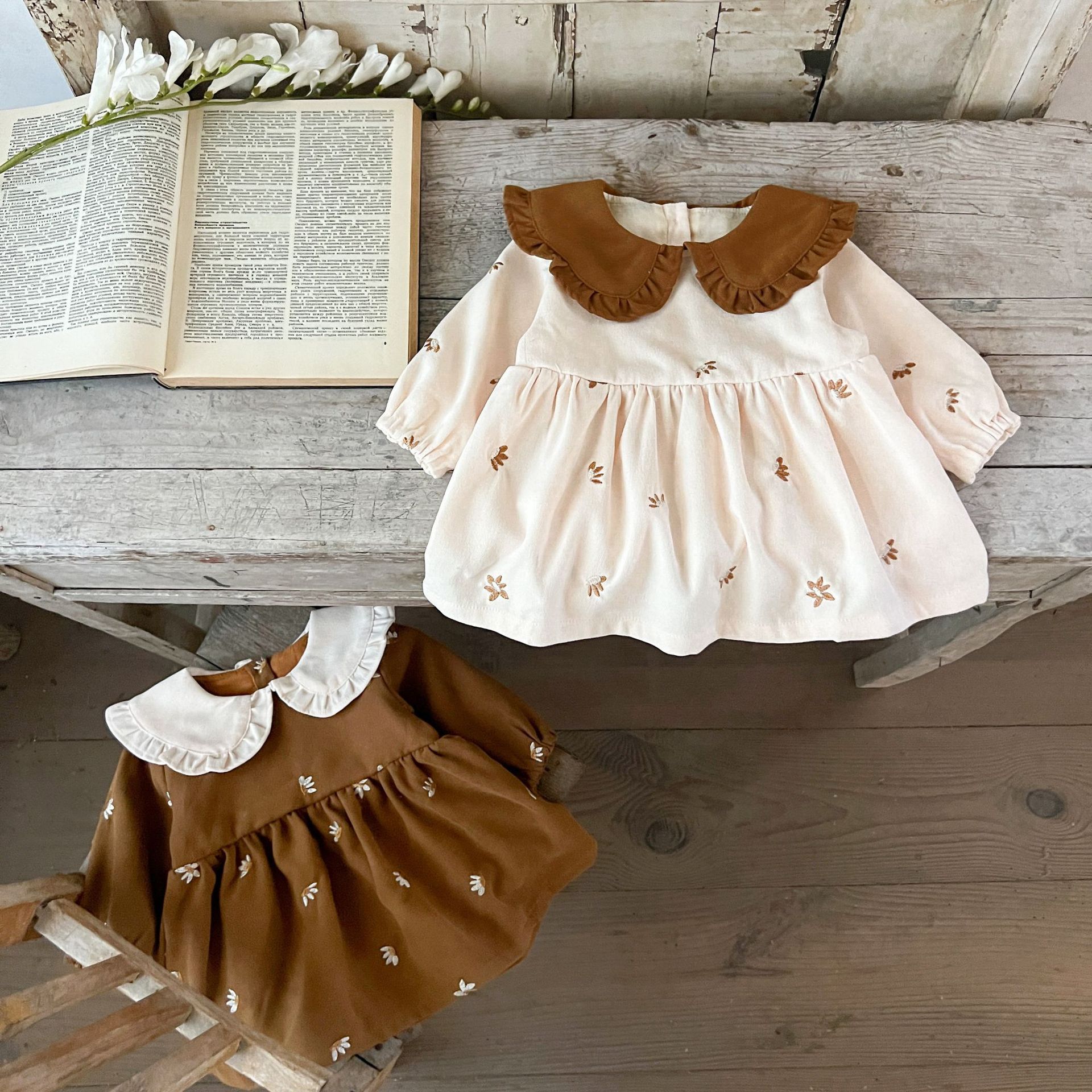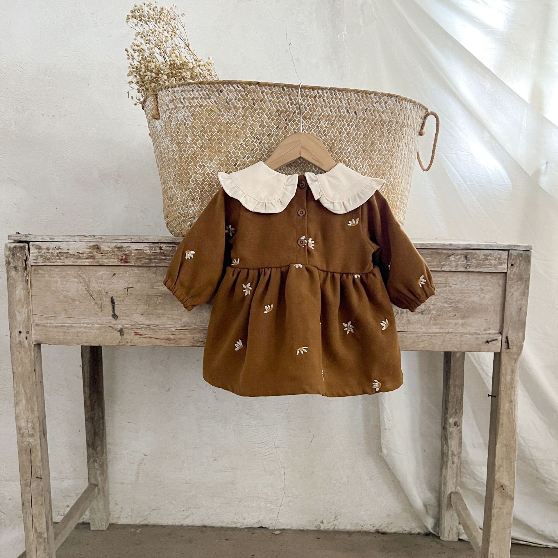 Ins Korean Style Girls 'Pure Cotton 자수 명암 옷깃 원피스 아기와 유아를위한 봄과 가을 캐주얼 원피스