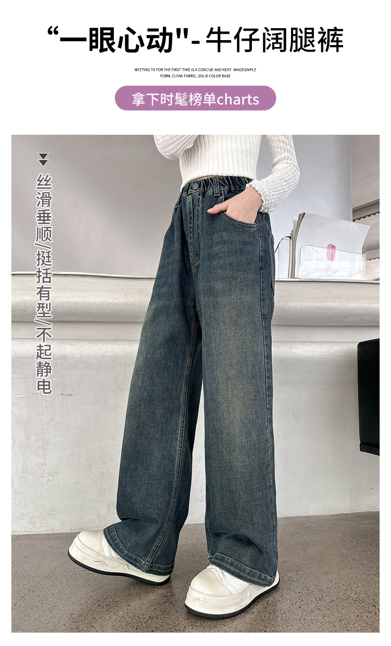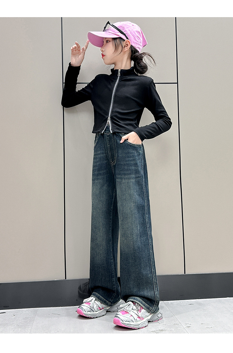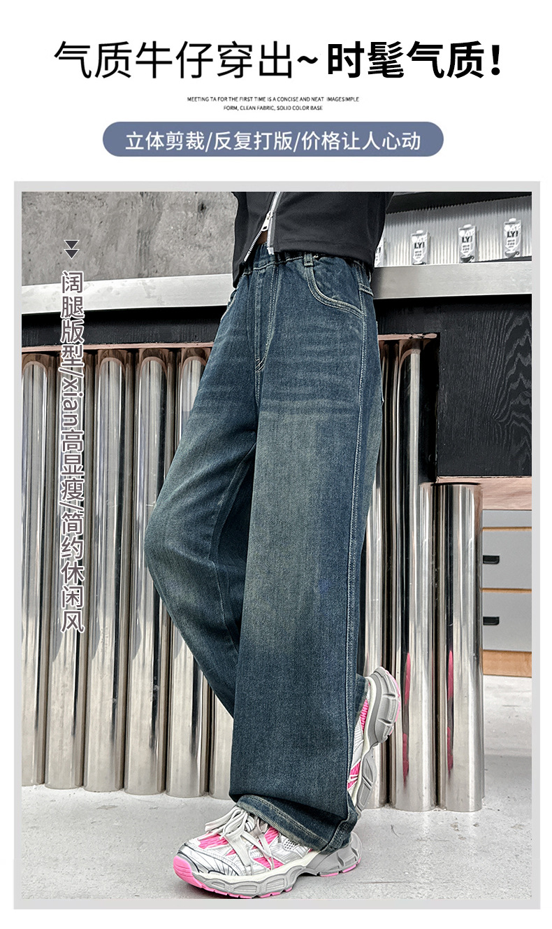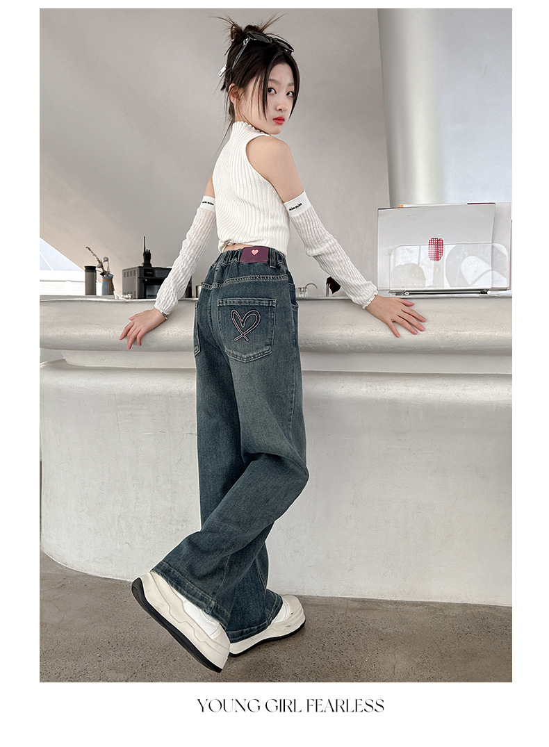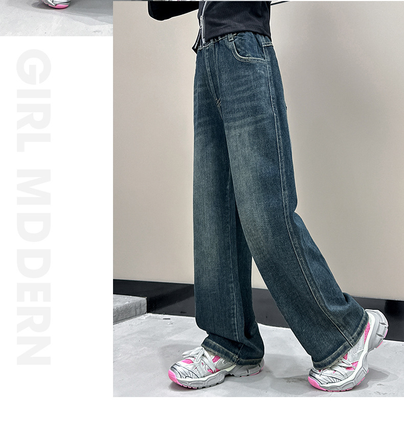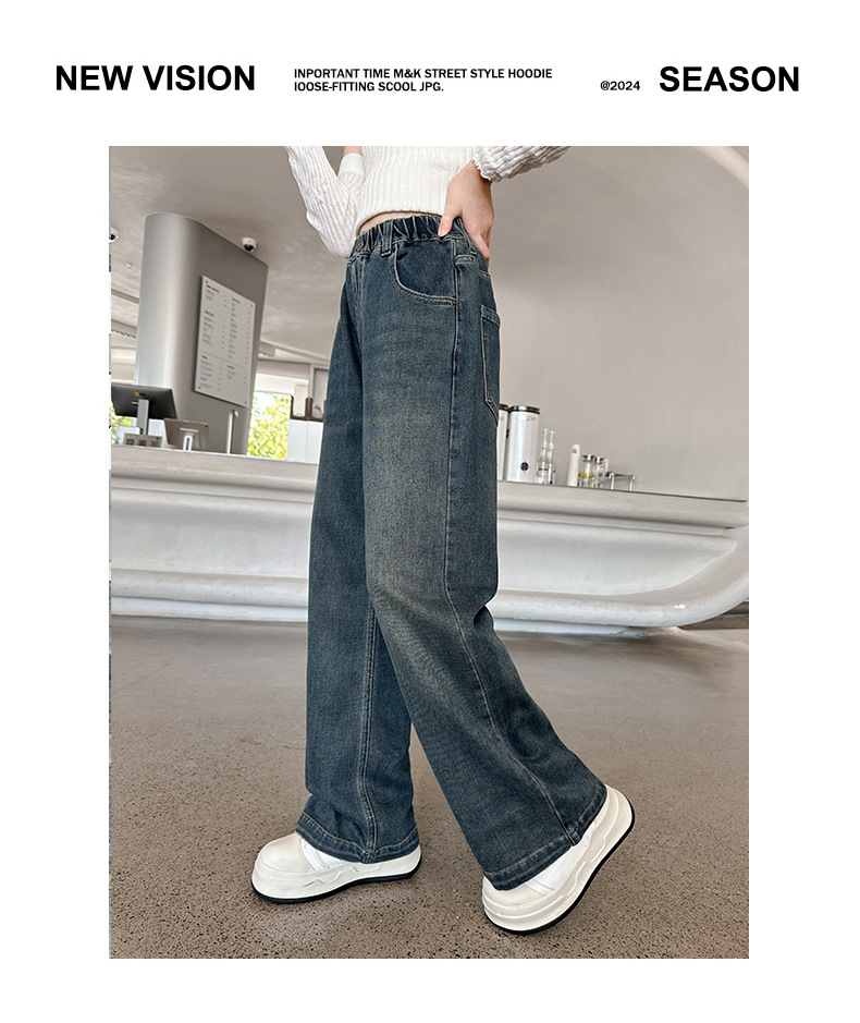 소녀 올 매치 청바지 봄과 가을 새 어린이 중학생 스트레이트 다리 와이드 레그 바지 큰 어린이 느슨한 데님 바지스토어 가기