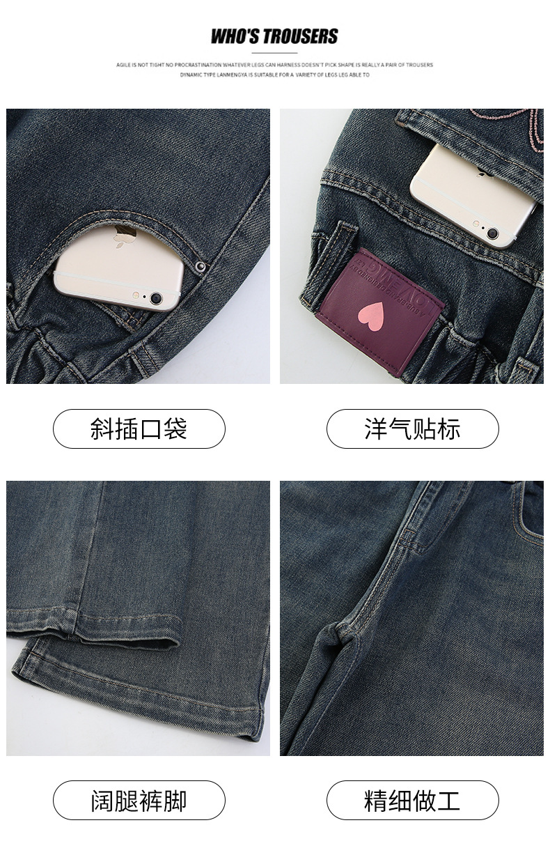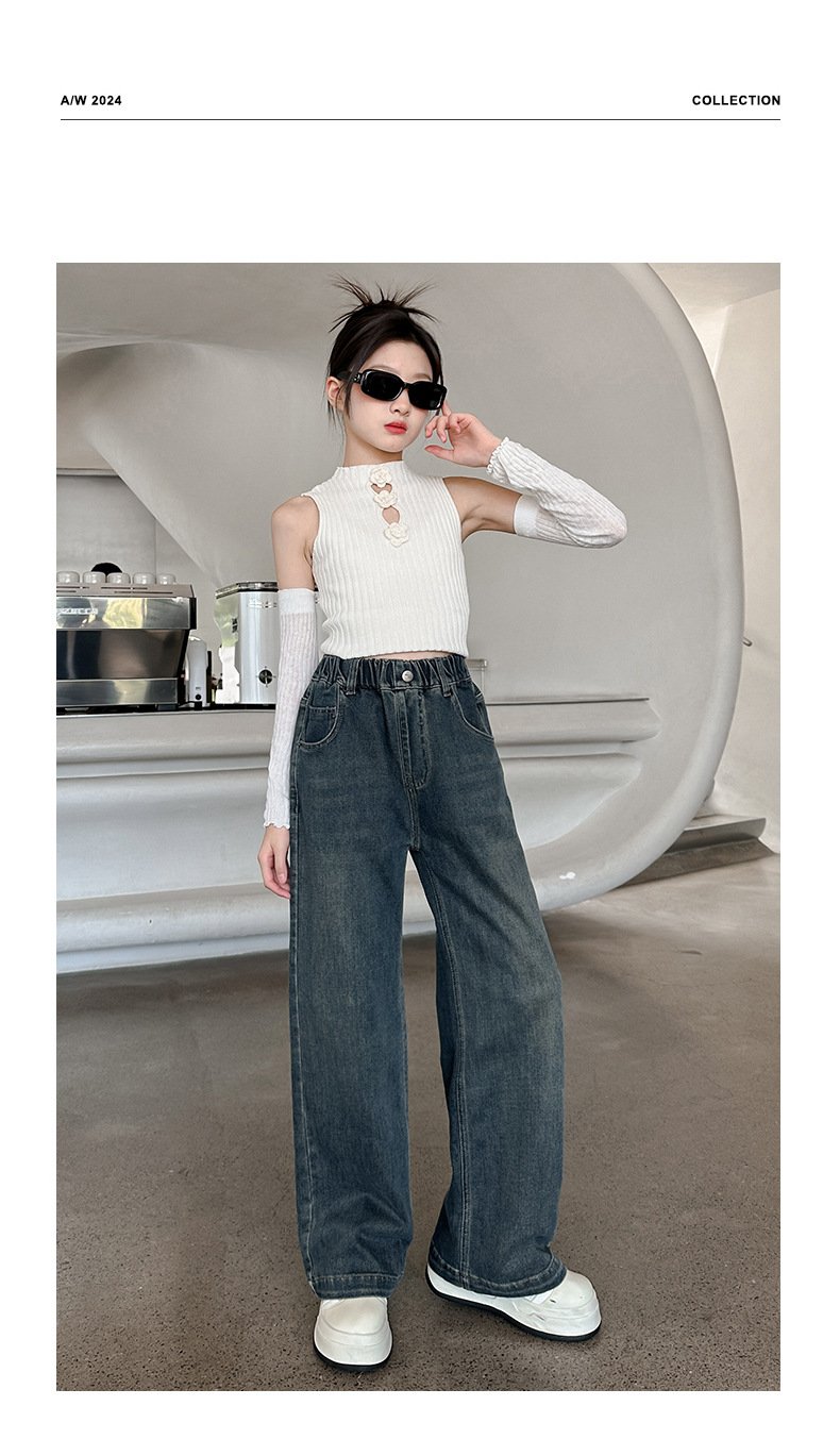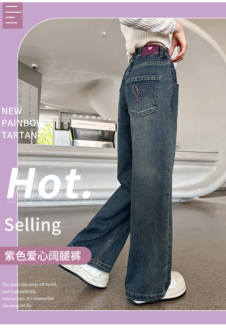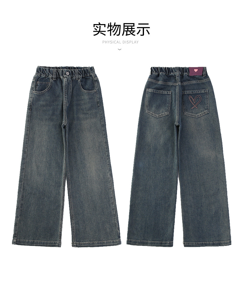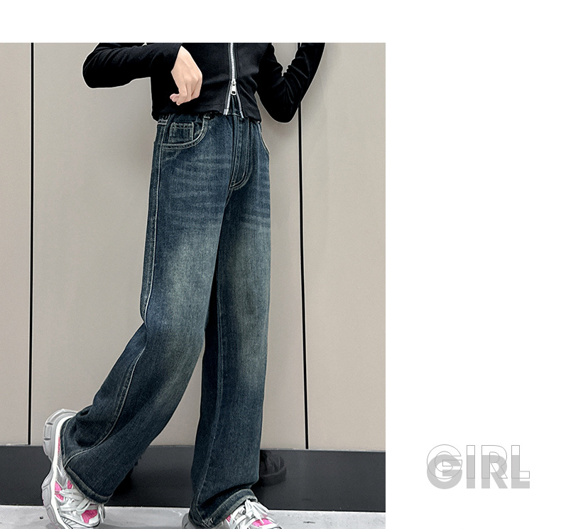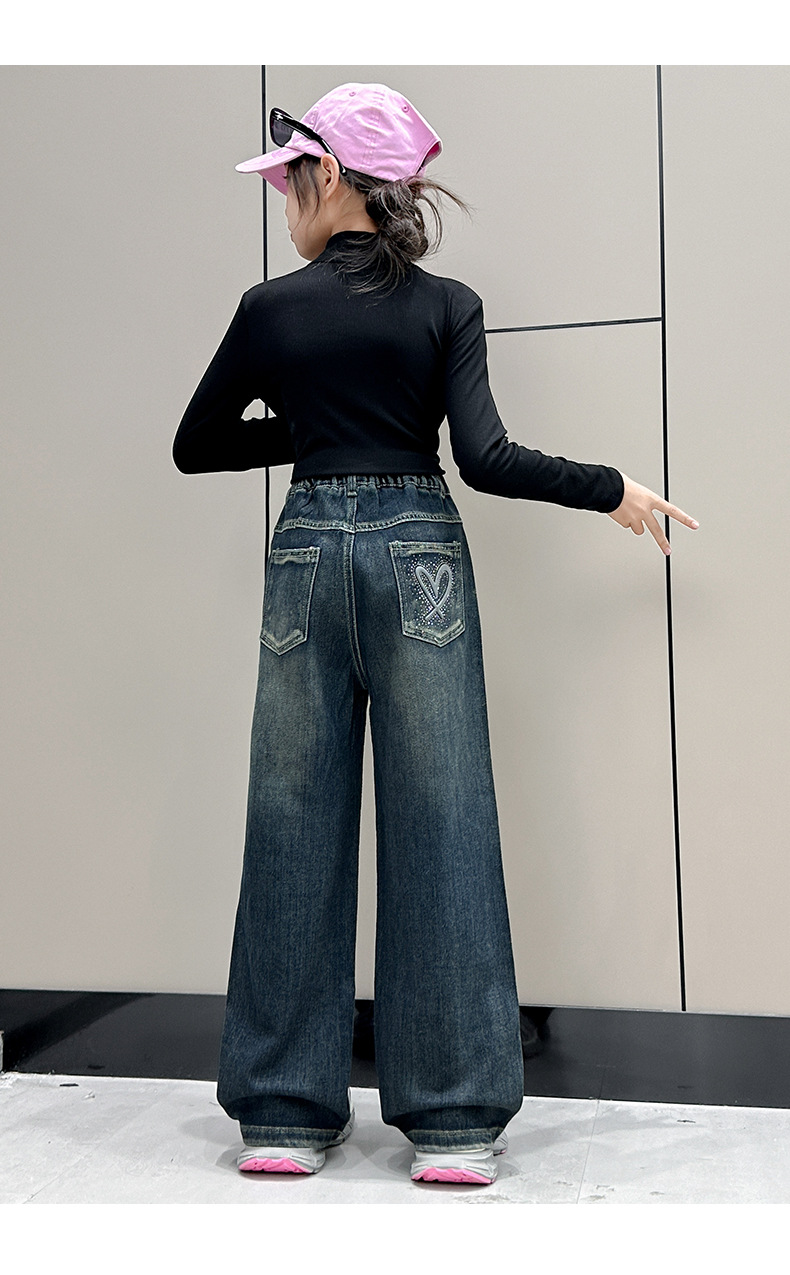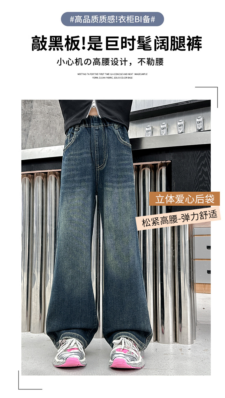 소녀 올 매치 청바지 봄과 가을 새 어린이 중학생 스트레이트 다리 와이드 레그 바지 큰 어린이 느슨한 데님 바지스토어 가기