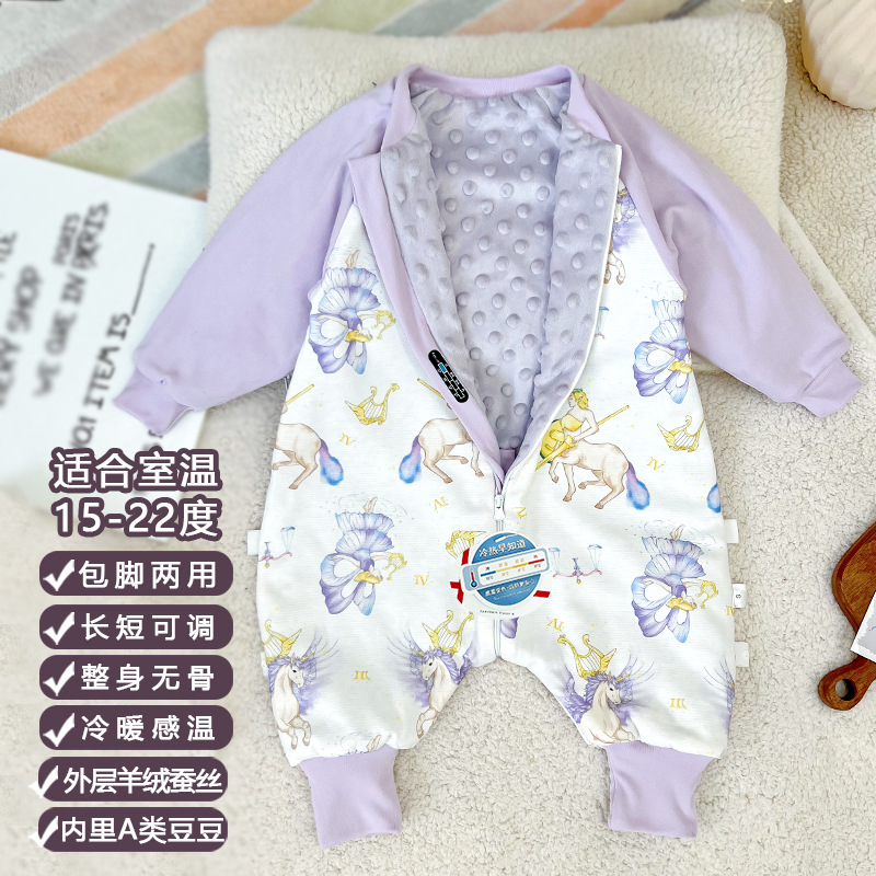 AEgtesol 어린이 비니 다리 슬리핑 백 아기 가을과 겨울 두꺼운 캐시미어 실크 안티 킥 퀼트 유아스토어 가기