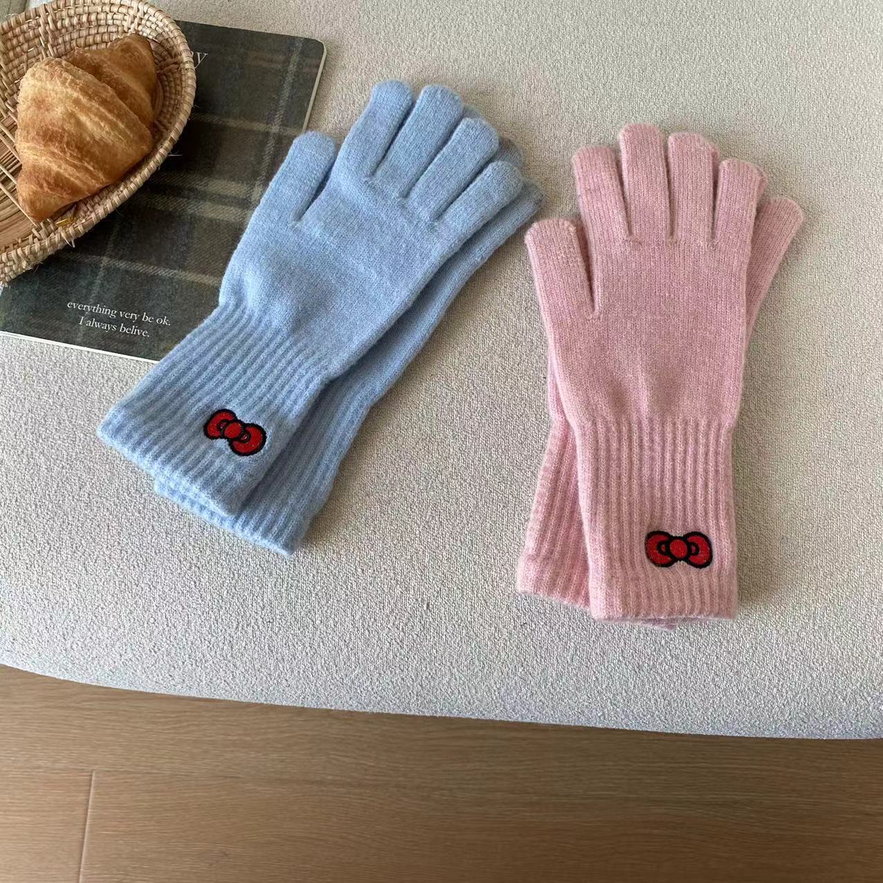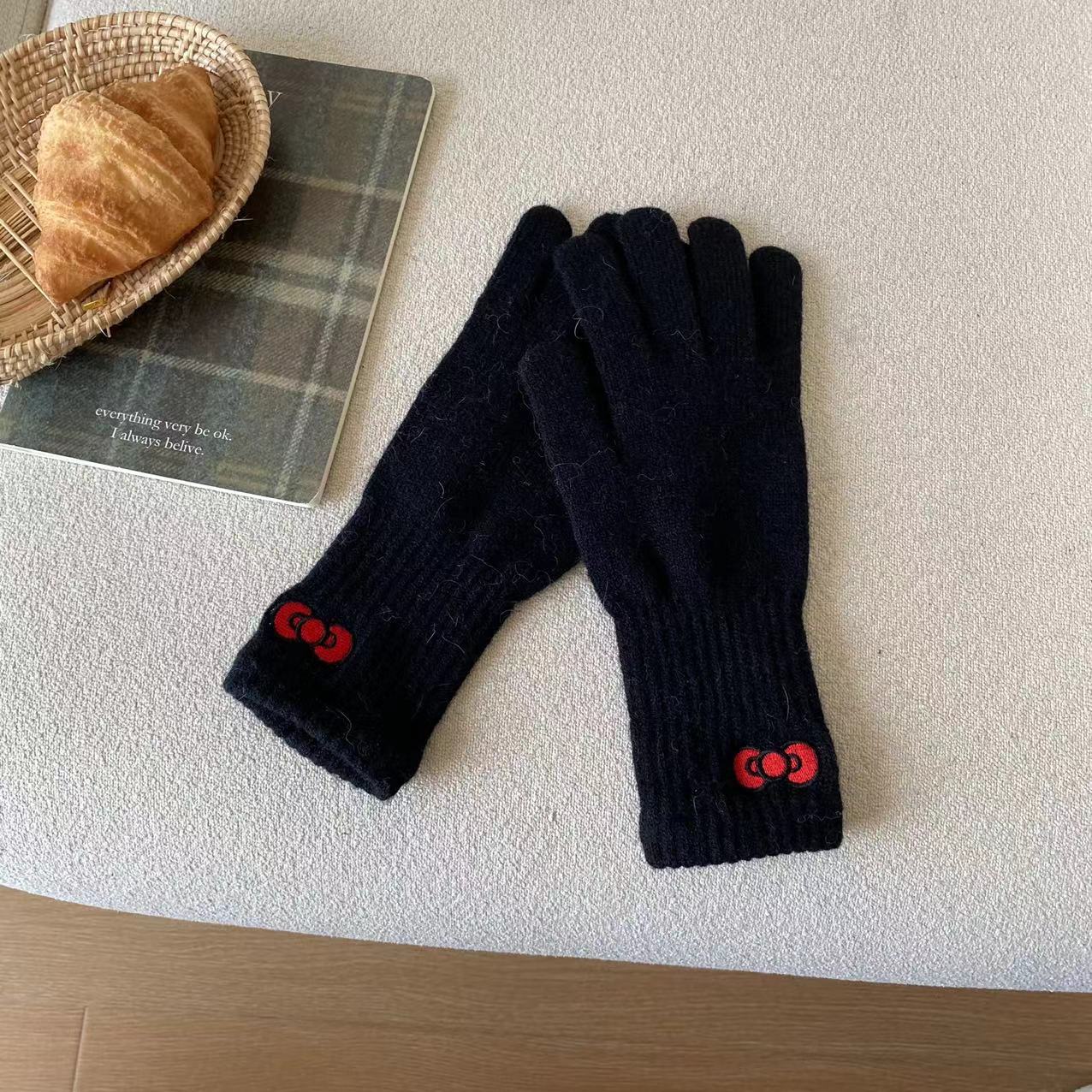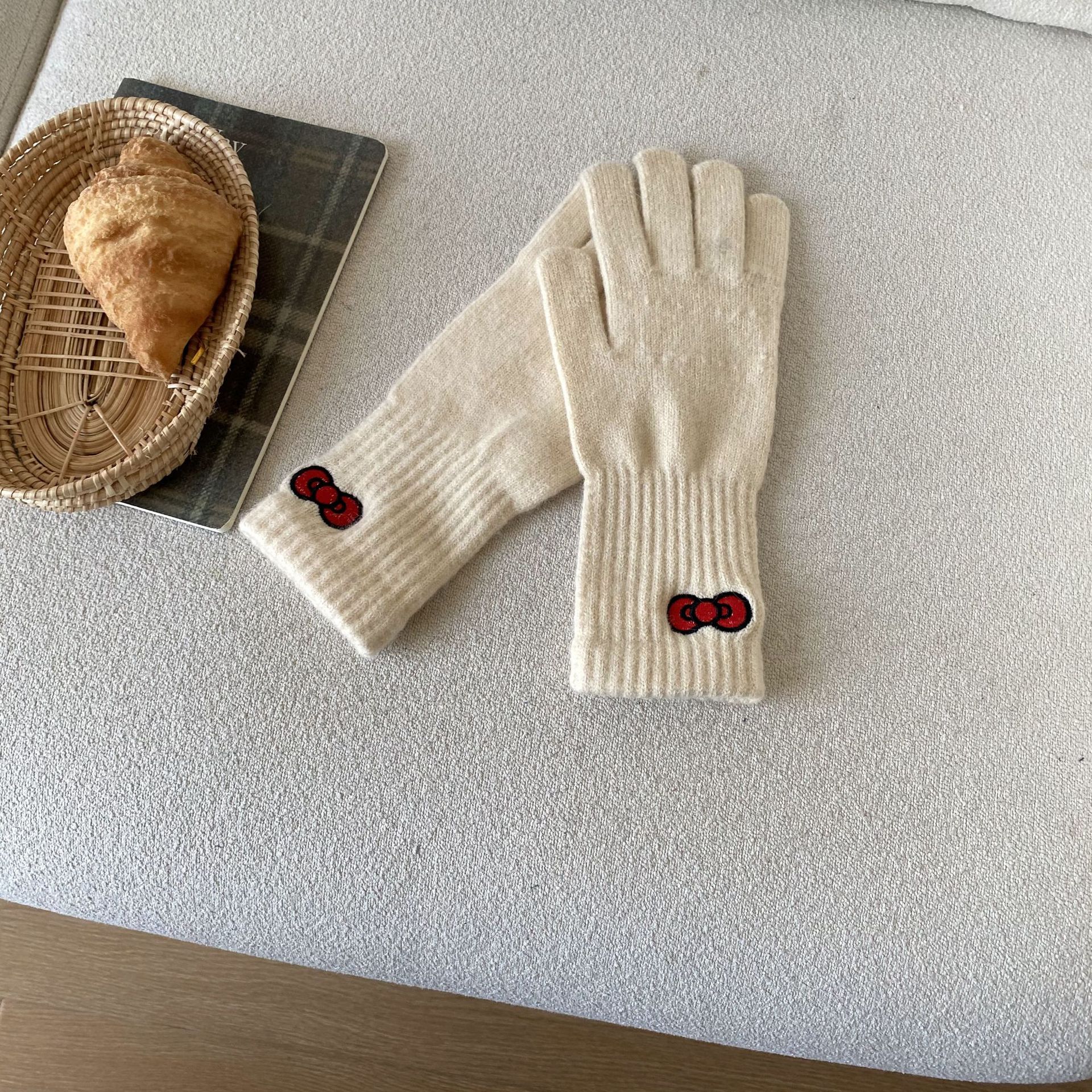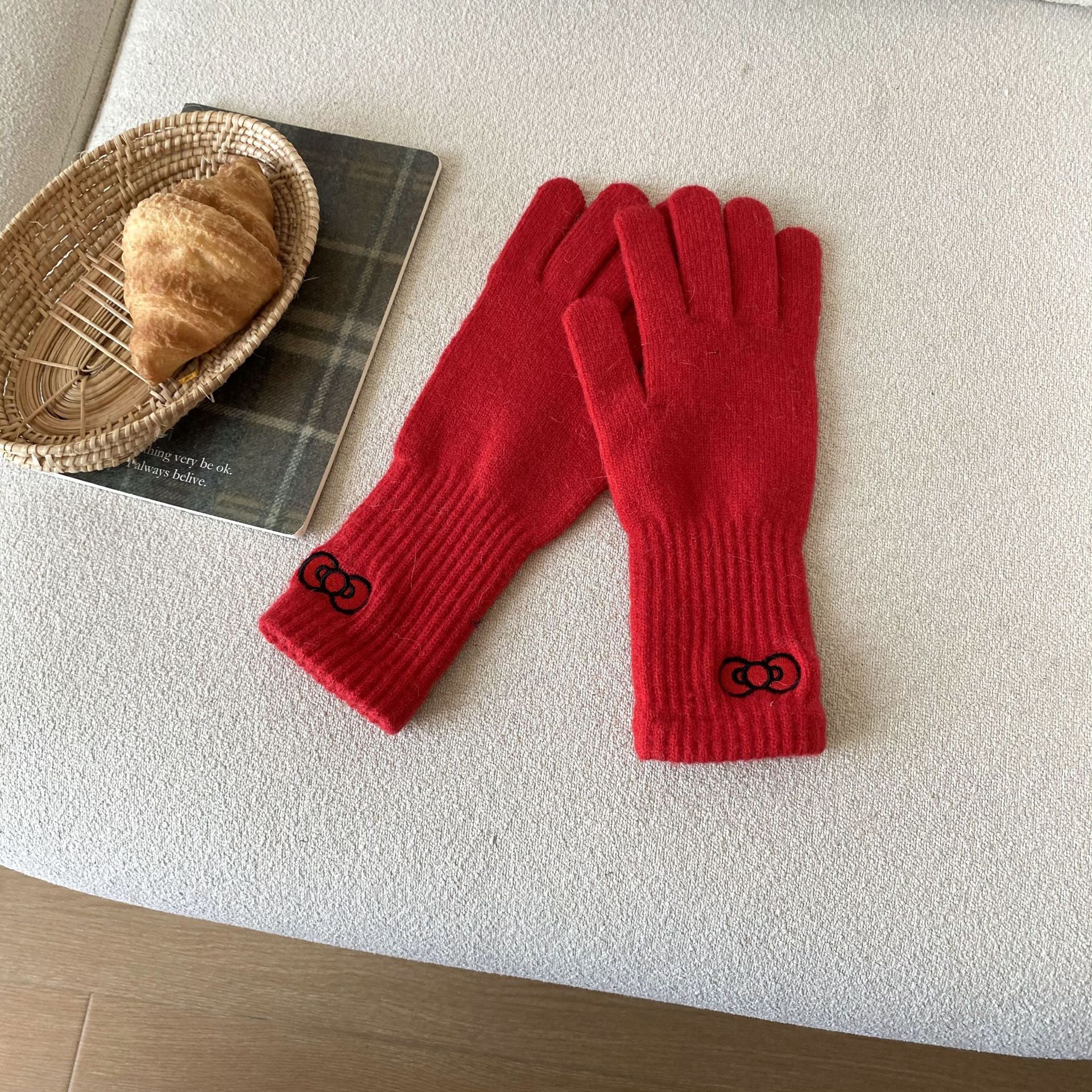 2024 새로운 도착 활 자수 장갑 여성의 귀여운 한국 스타일 단색 가을과 겨울 승마 따뜻한 손가락 누설 터치 스크린 트렌디스토어 가기