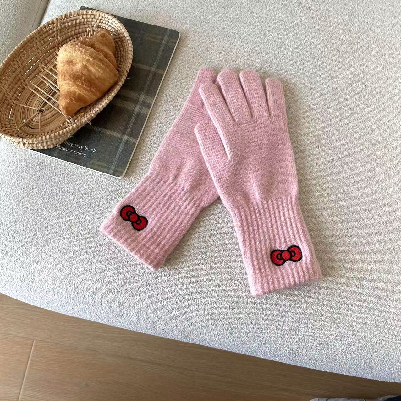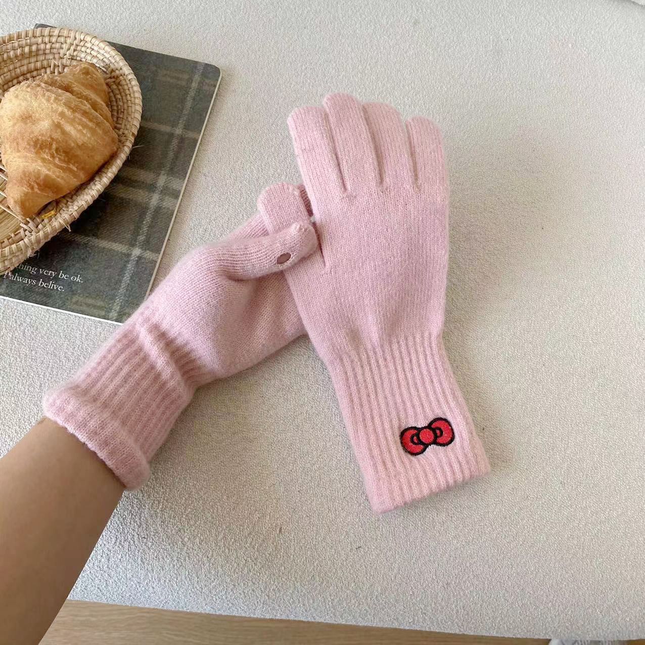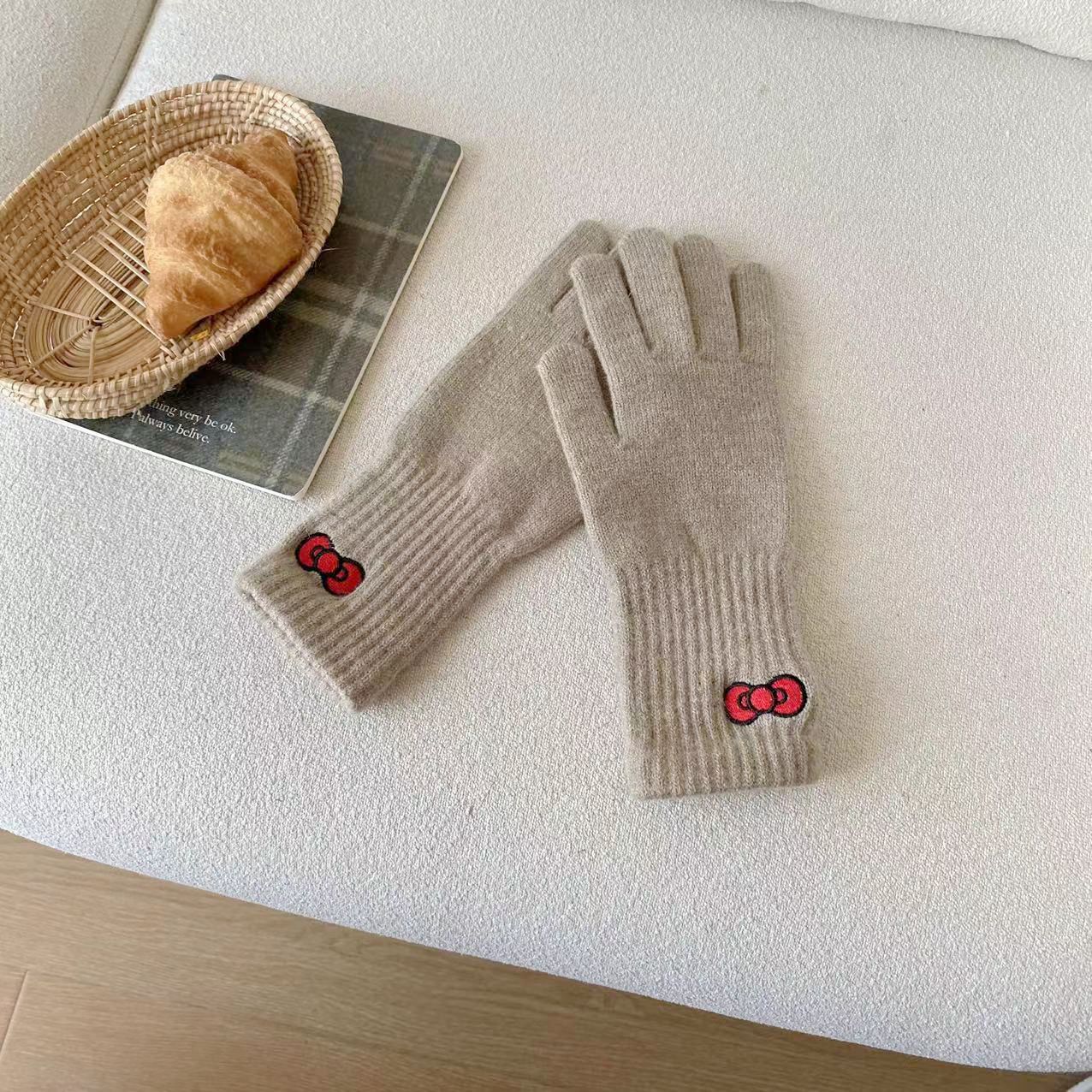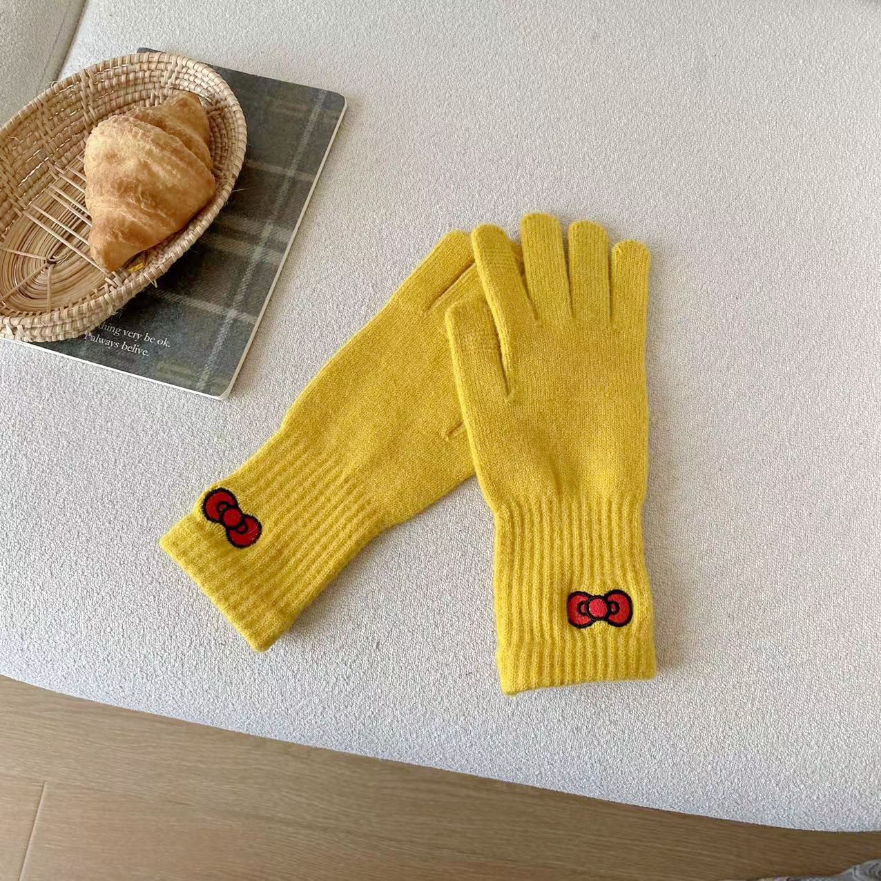 2024 새로운 도착 활 자수 장갑 여성의 귀여운 한국 스타일 단색 가을과 겨울 승마 따뜻한 손가락 누설 터치 스크린 트렌디스토어 가기