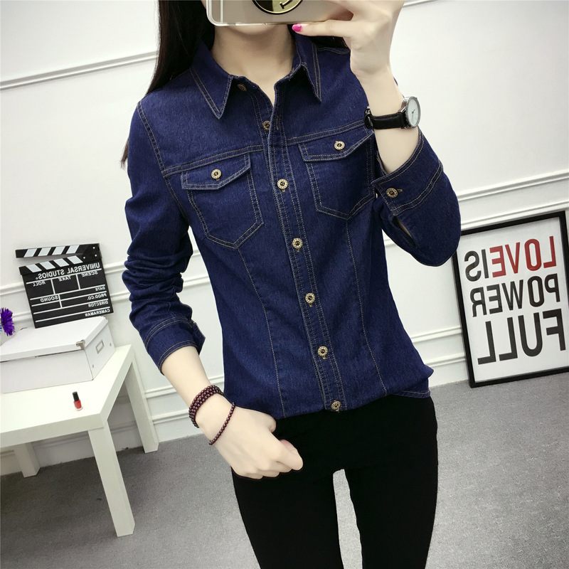 2025년 가을 신상품 데님 셔츠 여성 슬림핏 스트레치 재킷 다용도 긴팔 데님 재킷스토어 가기