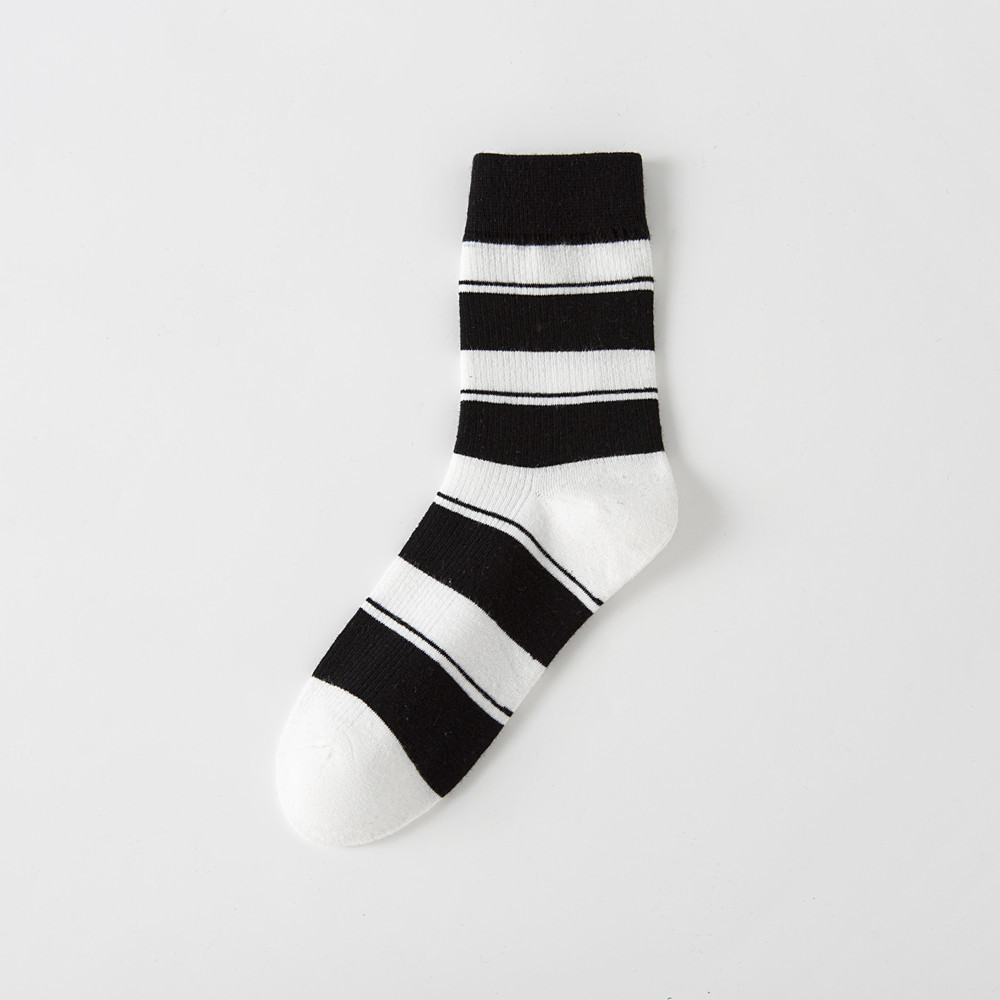가을과 겨울 여자 양말 중간 배럴 줄무늬 양말 넓은 스트립 대조 긴 배럴 통근 올매치 편안한 빈티지 캐주얼 코튼 양말
