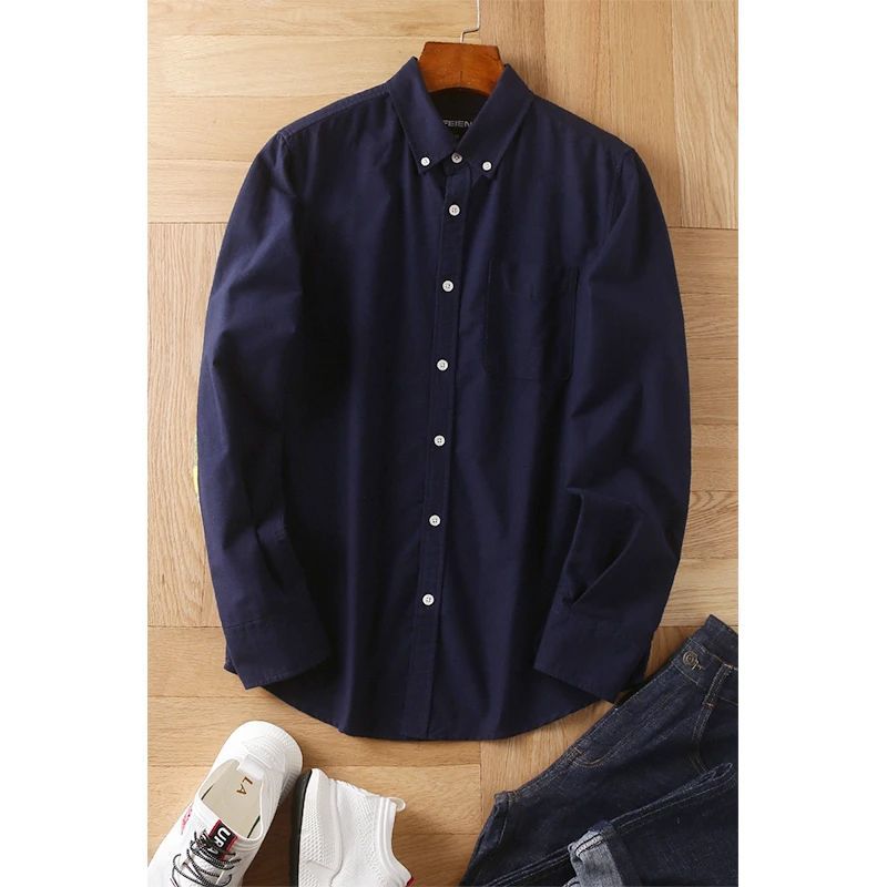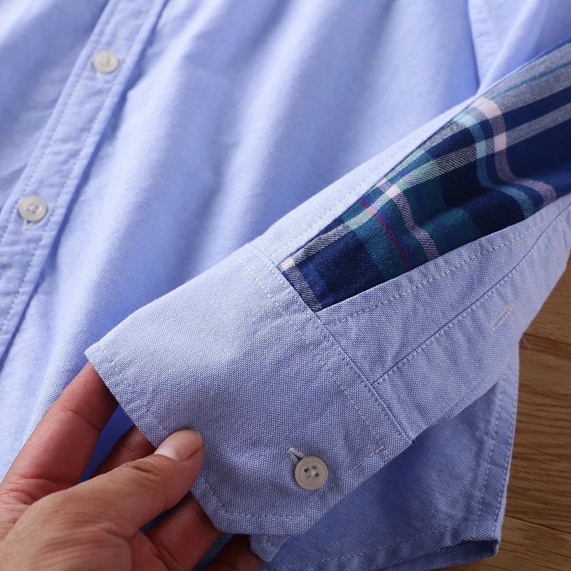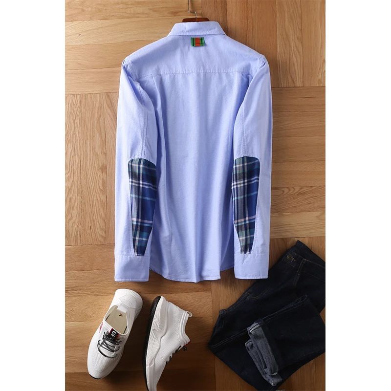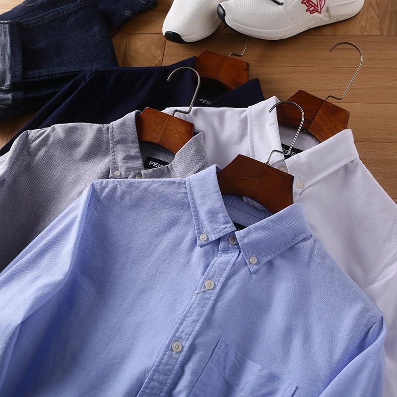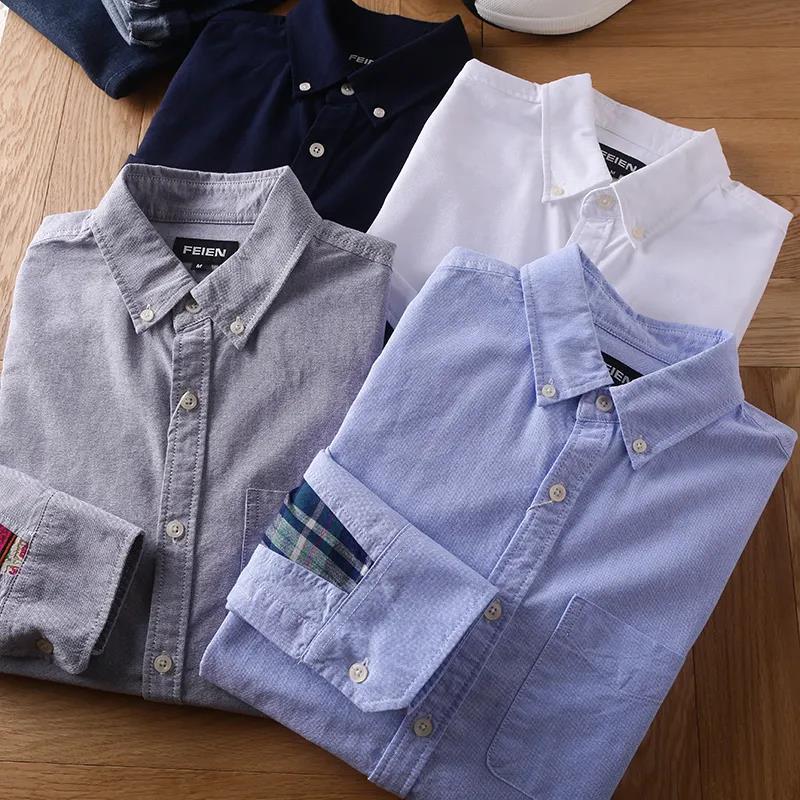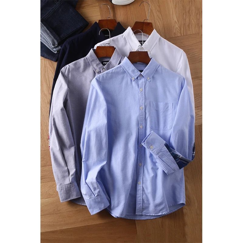 2024 년 새 가을 옥스포드 회전 패치 셔츠 남성 긴 소매 수출 남성 캐주얼 셔츠 재킷스토어 가기