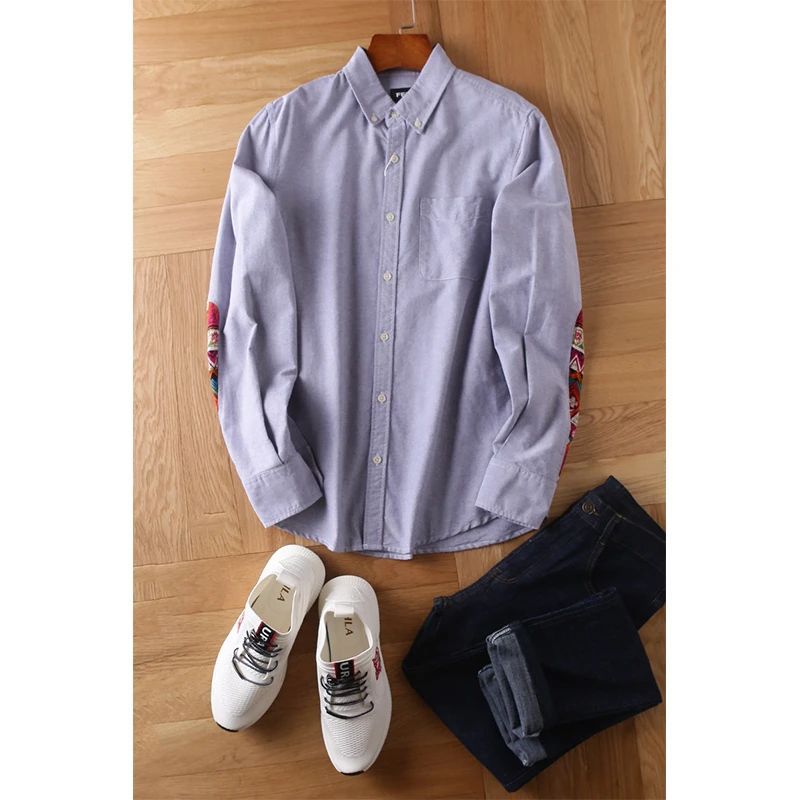 2024 년 새 가을 옥스포드 회전 패치 셔츠 남성 긴 소매 수출 남성 캐주얼 셔츠 재킷