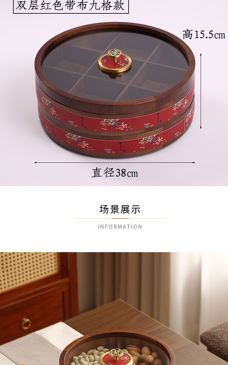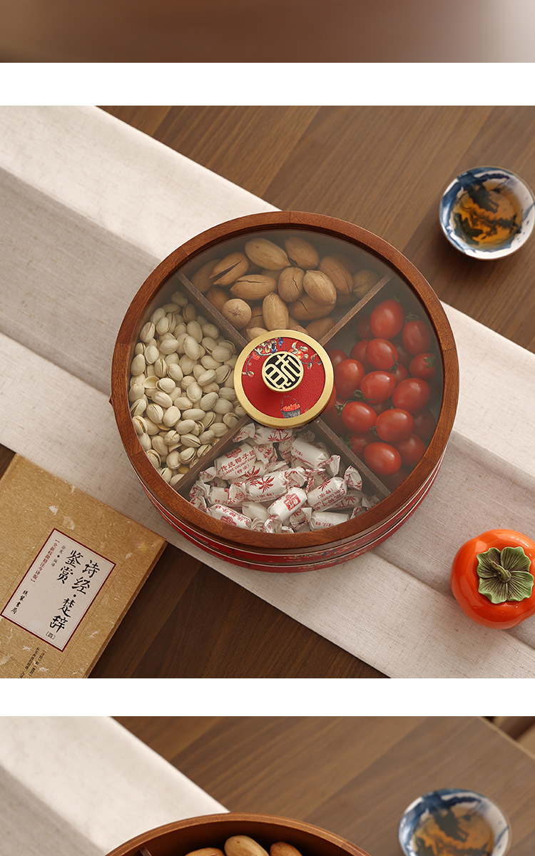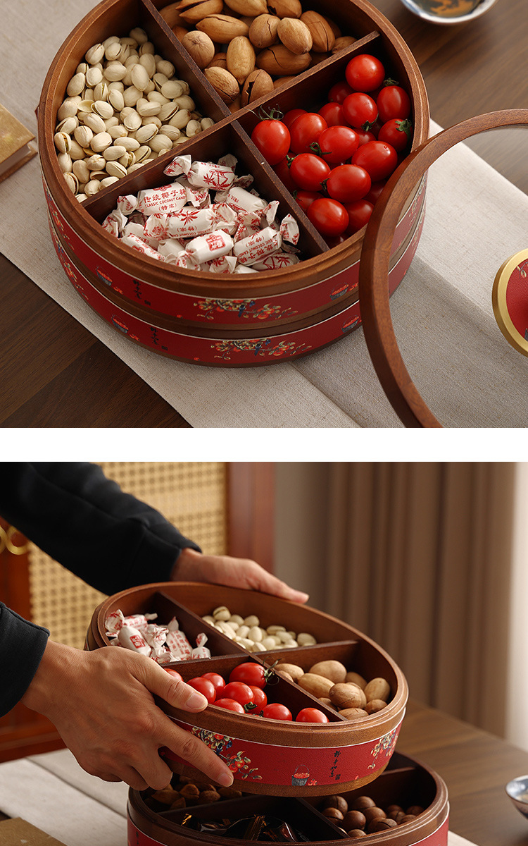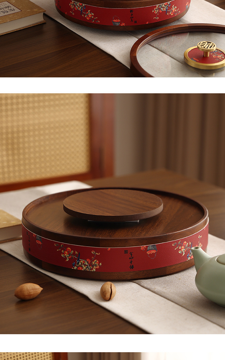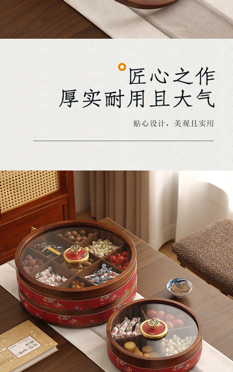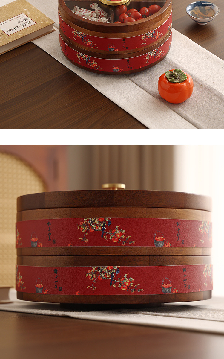 새로운 중국 스타일의 솔리드 우드 캔디 박스 거실 가정용 너트 말린 과일 저장 상자 다층 회전 커피 테이블 스낵 과일 플레이트