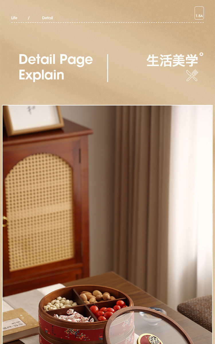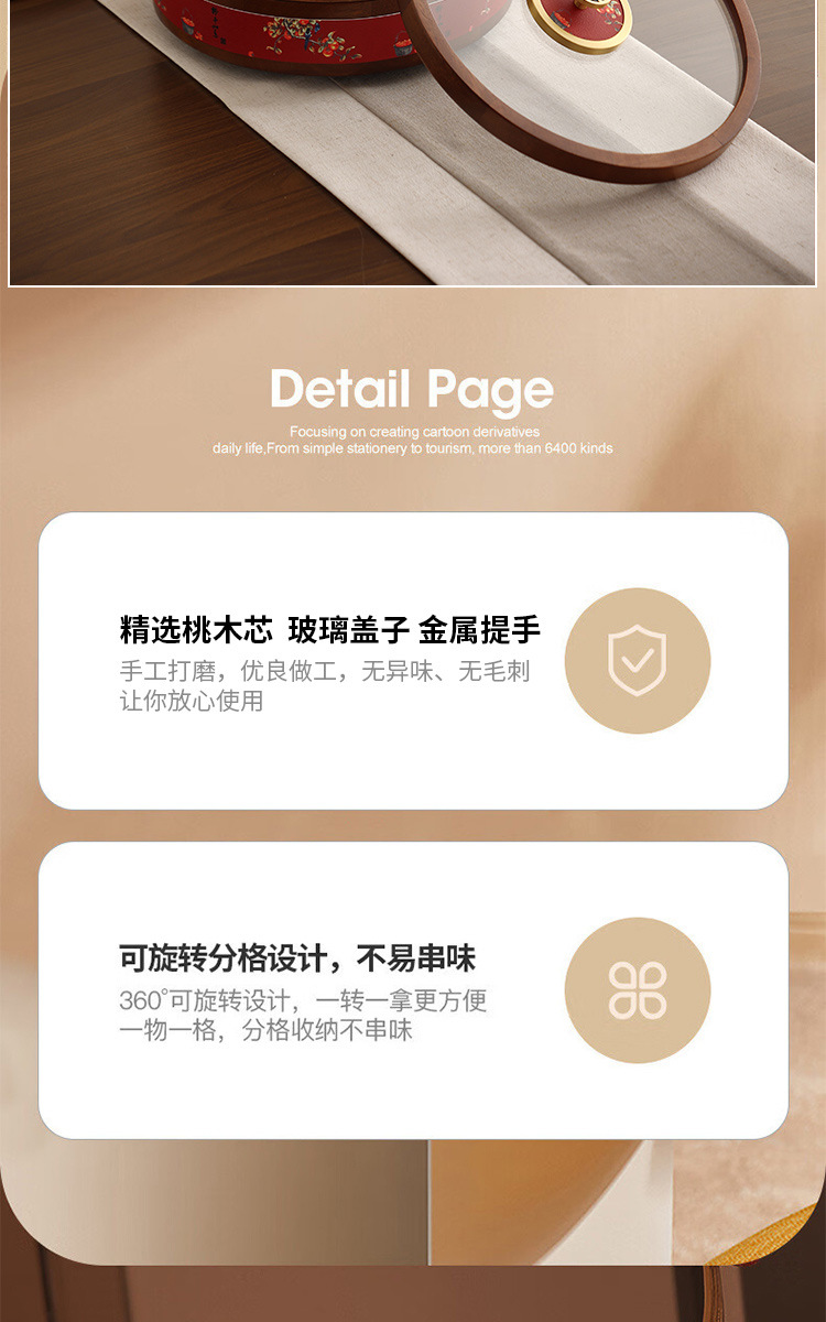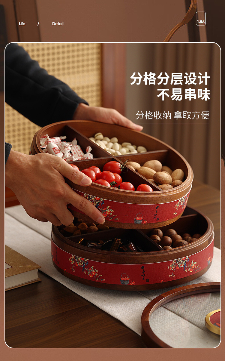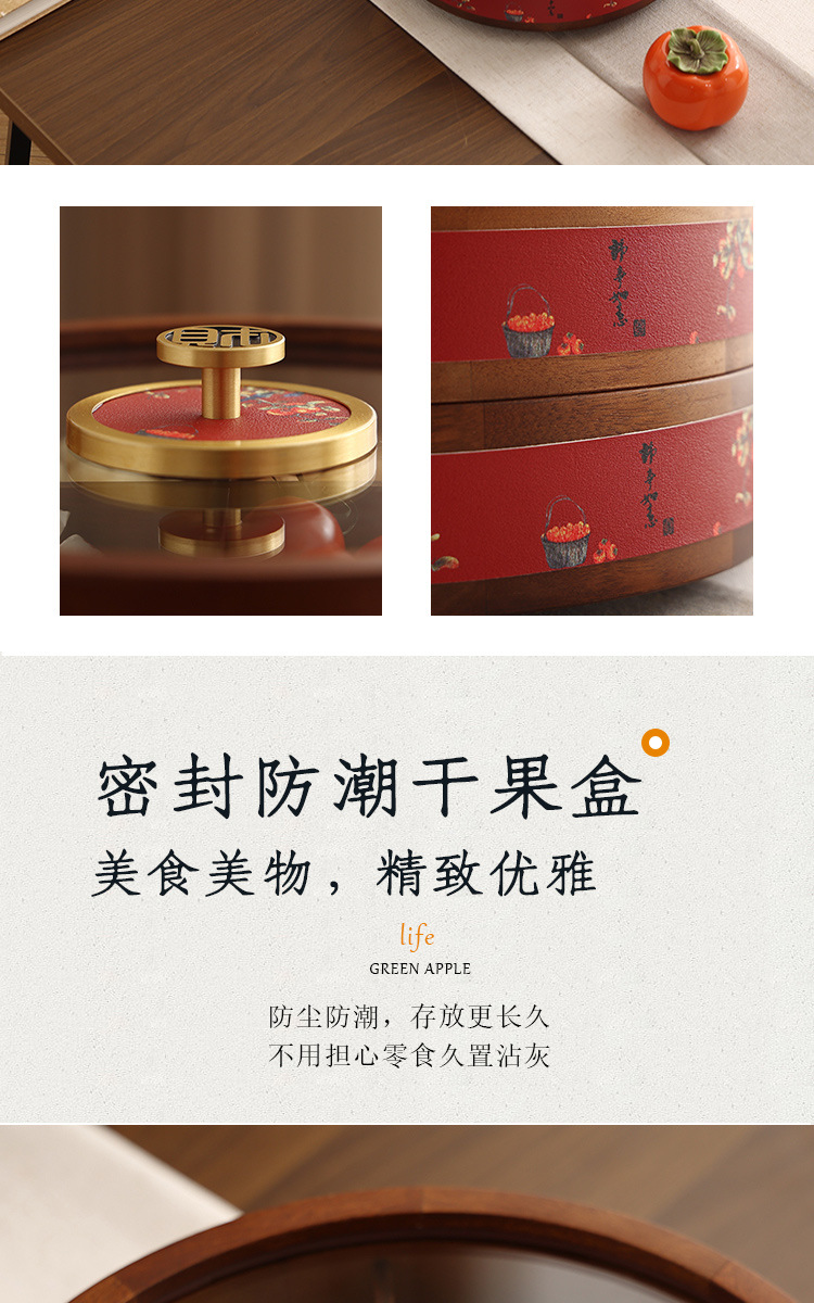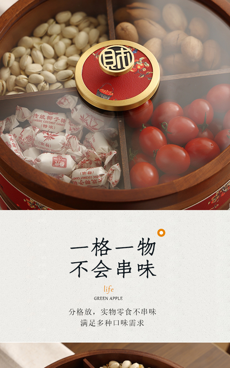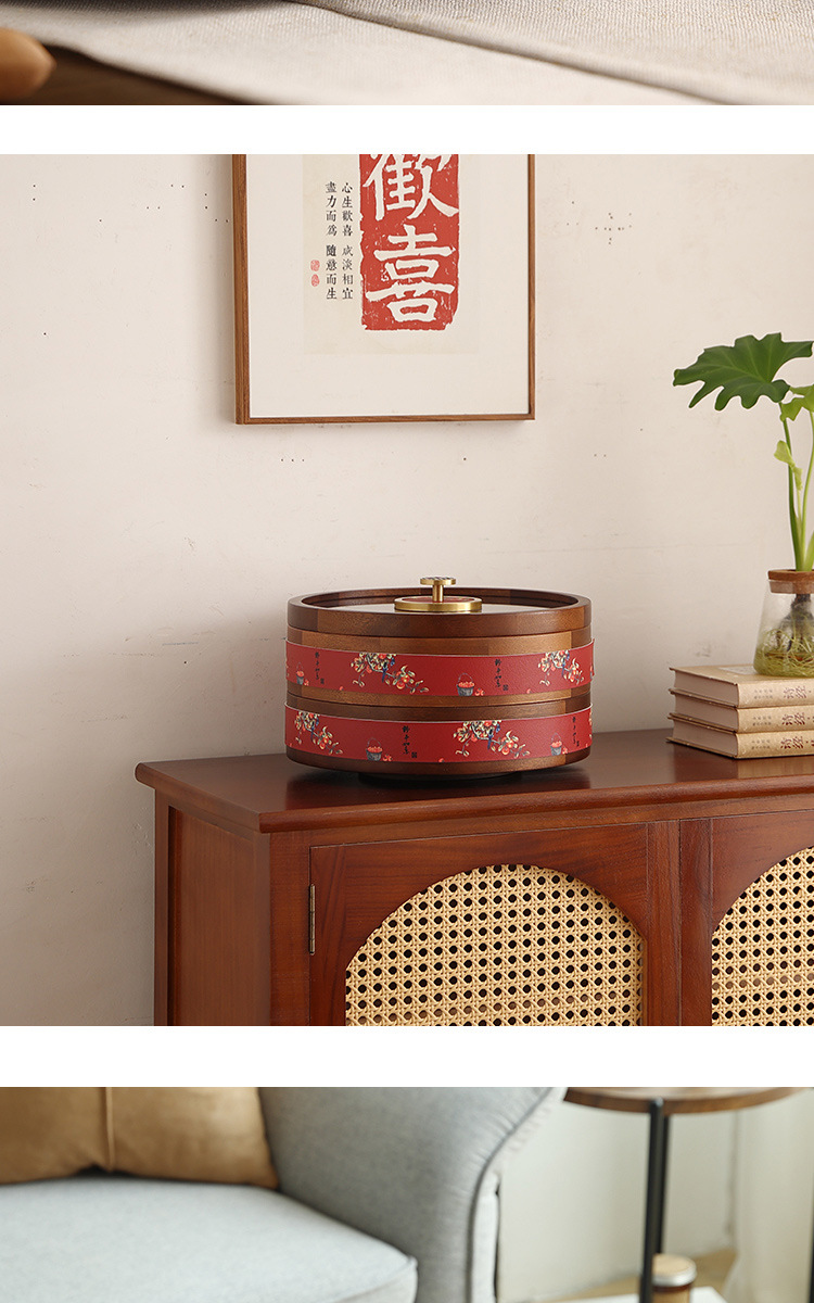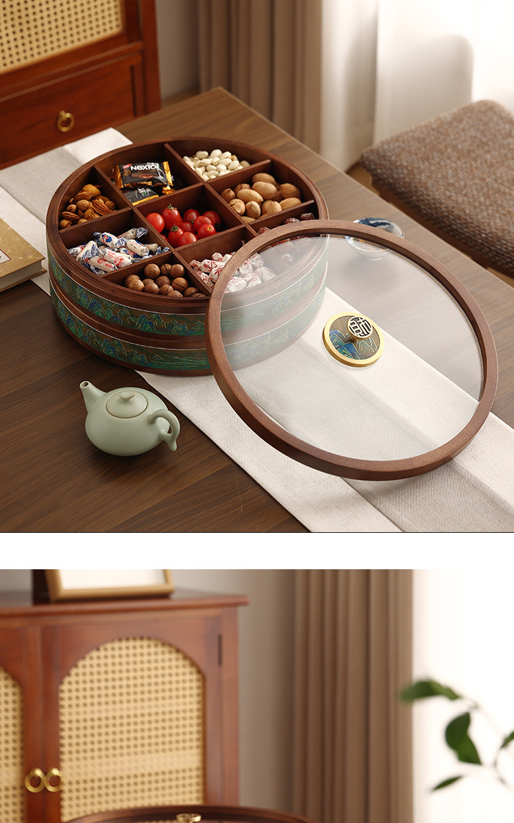 새로운 중국 스타일의 솔리드 우드 캔디 박스 거실 가정용 너트 말린 과일 저장 상자 다층 회전 커피 테이블 스낵 과일 플레이트