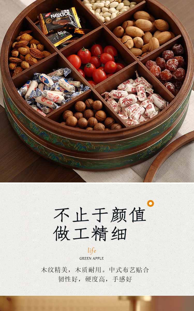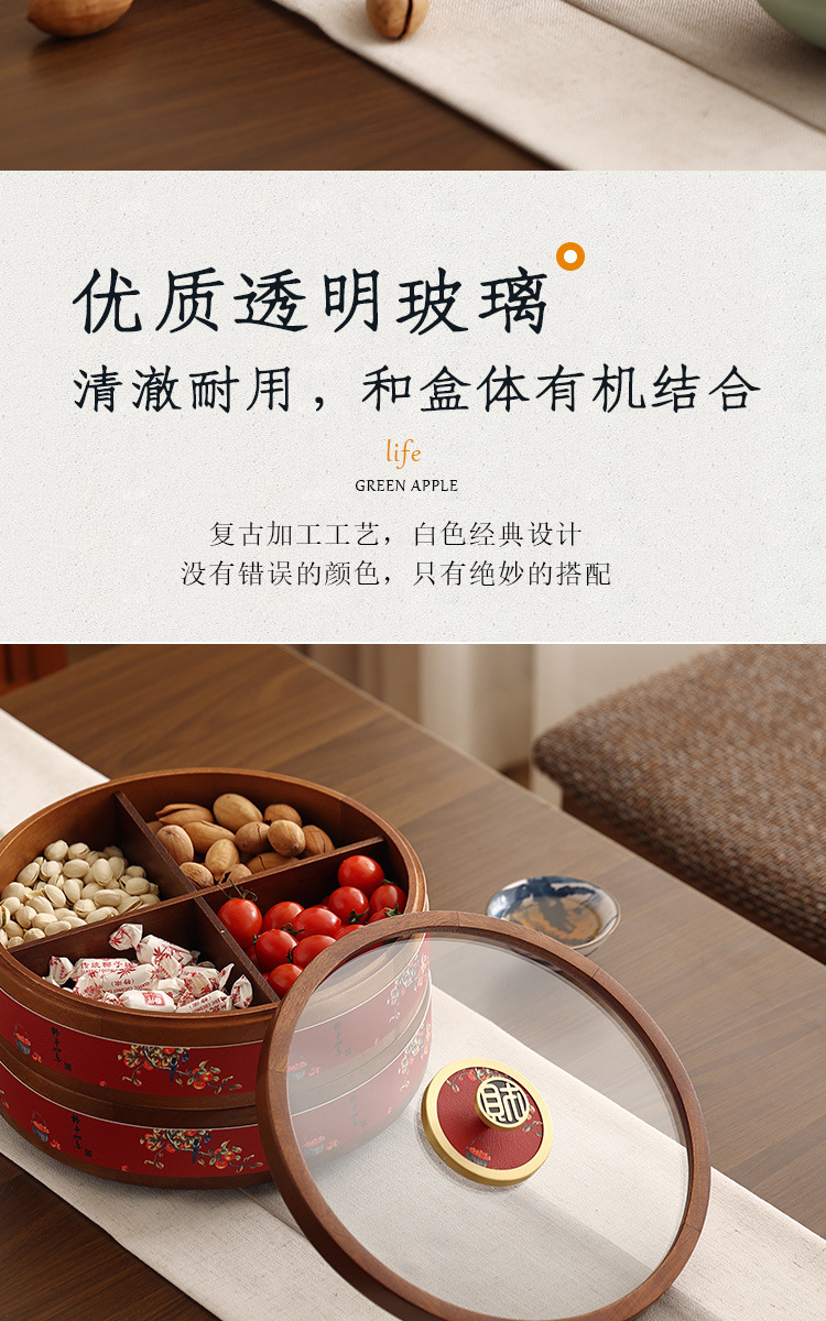 새로운 중국 스타일의 솔리드 우드 캔디 박스 거실 가정용 너트 말린 과일 저장 상자 다층 회전 커피 테이블 스낵 과일 플레이트스토어 가기