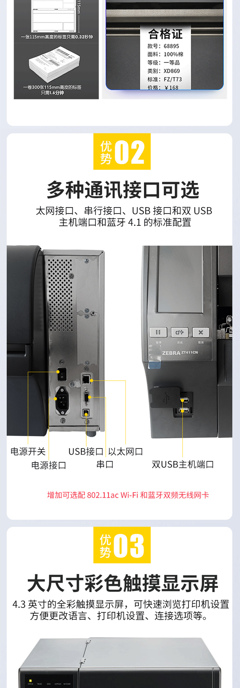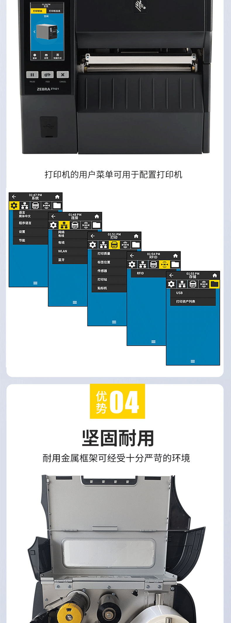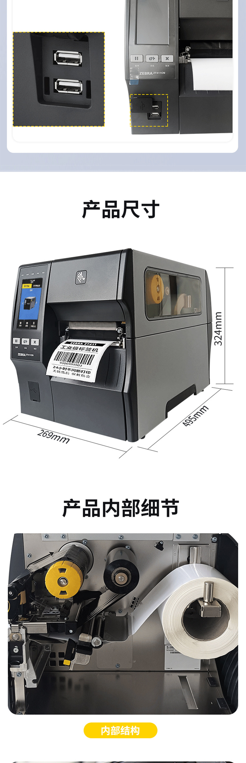 ZT411-600 DPI 울트라 HD 산업용 프린터 새로운 에너지 전자 제조 제품 일련 번호 라벨