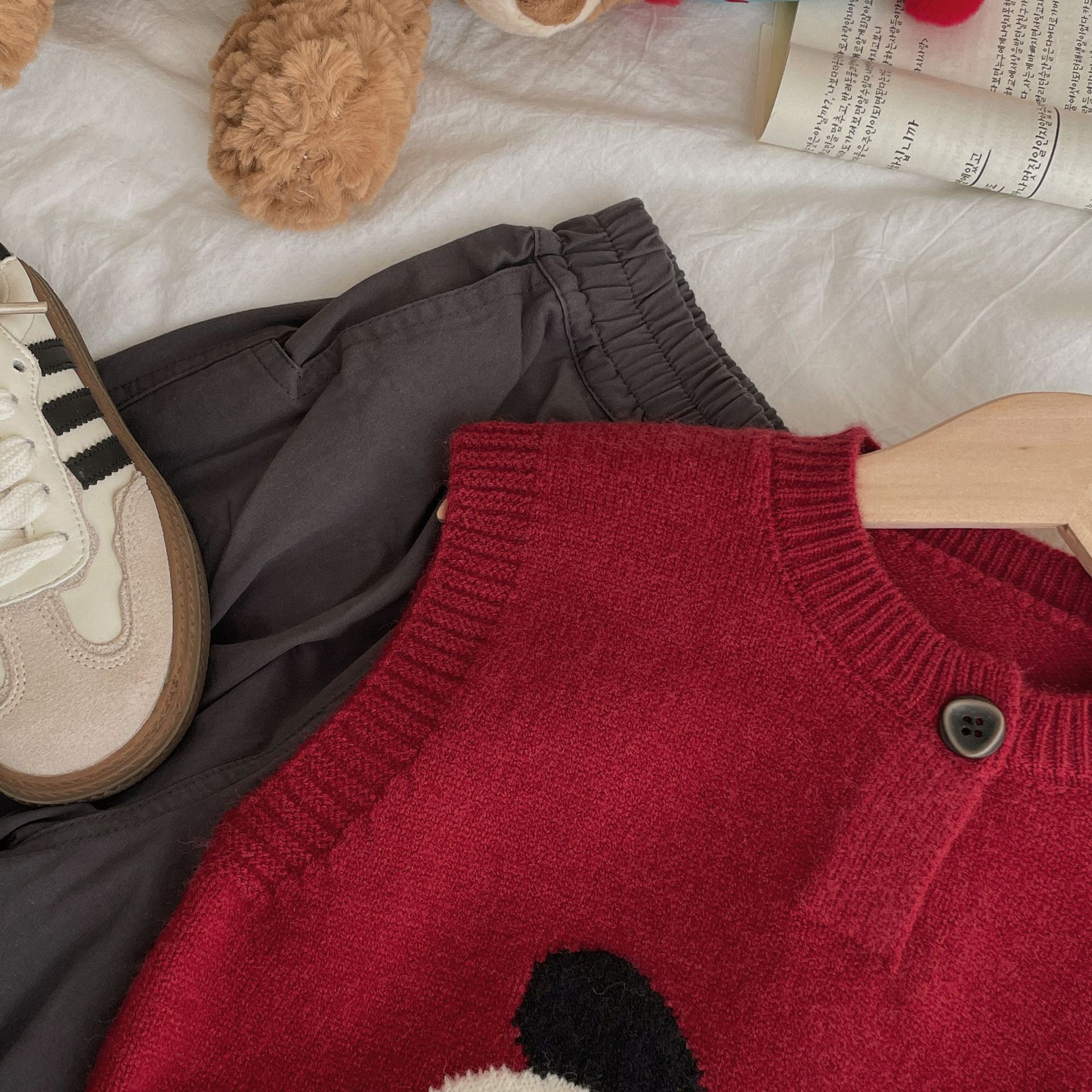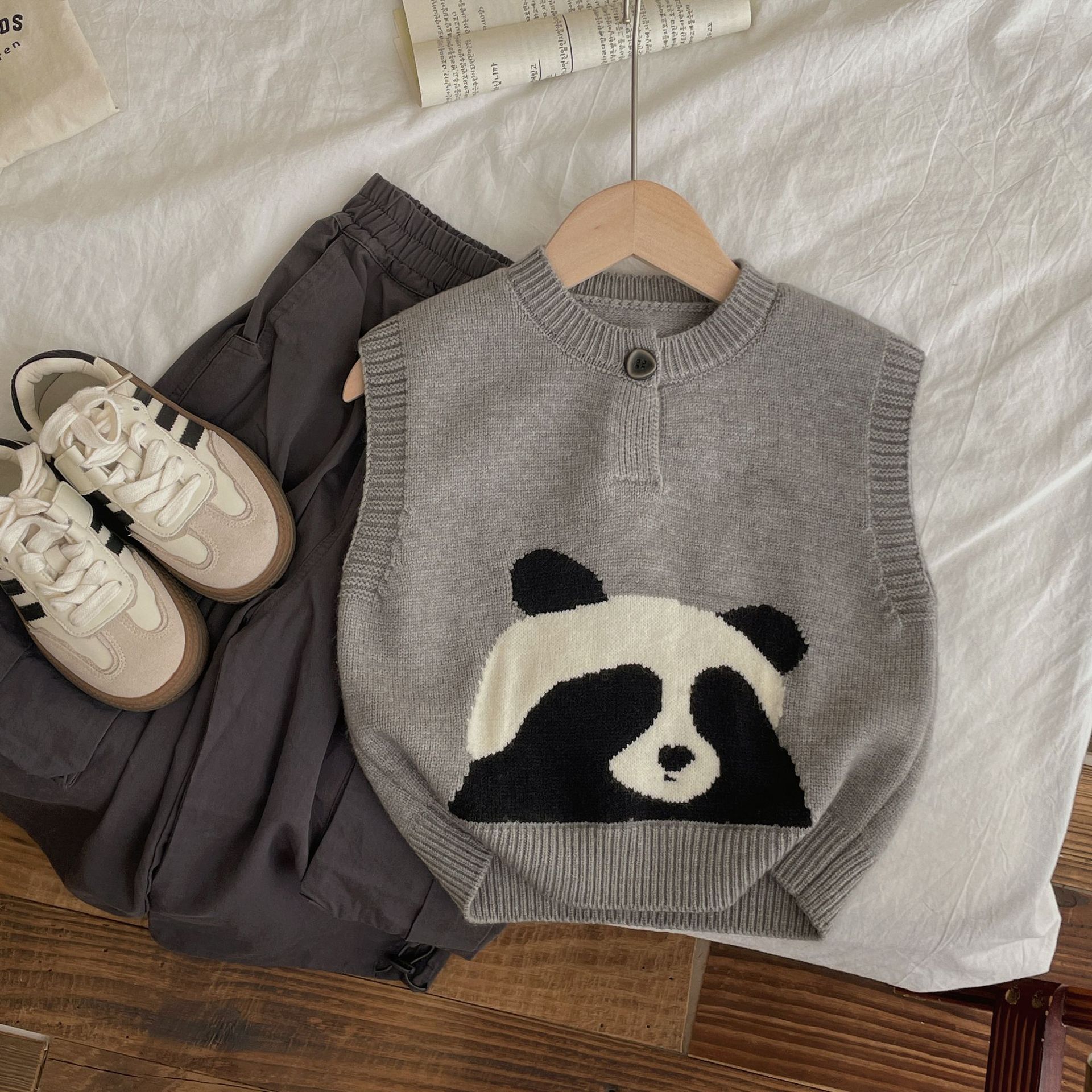 벤슈 슈 봄과 가을 새로운 남녀 팬더 목걸이 버튼이있는 니트 조끼, 둥근 목 어린이 조끼 특징
