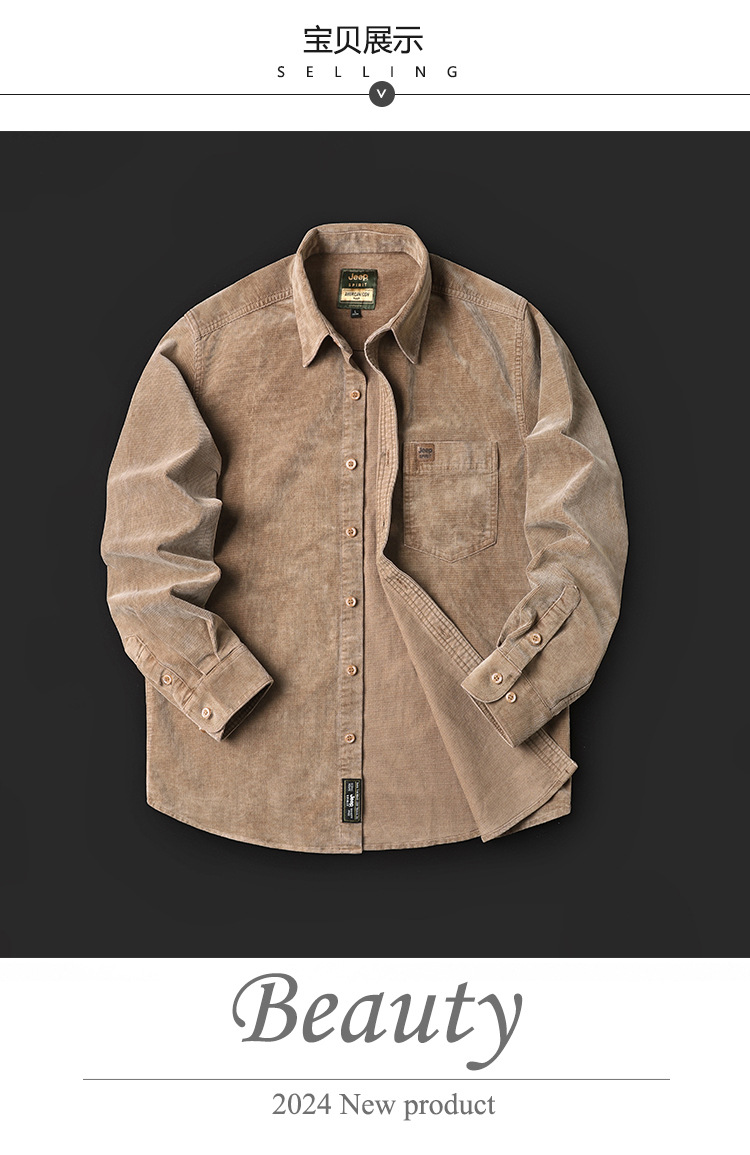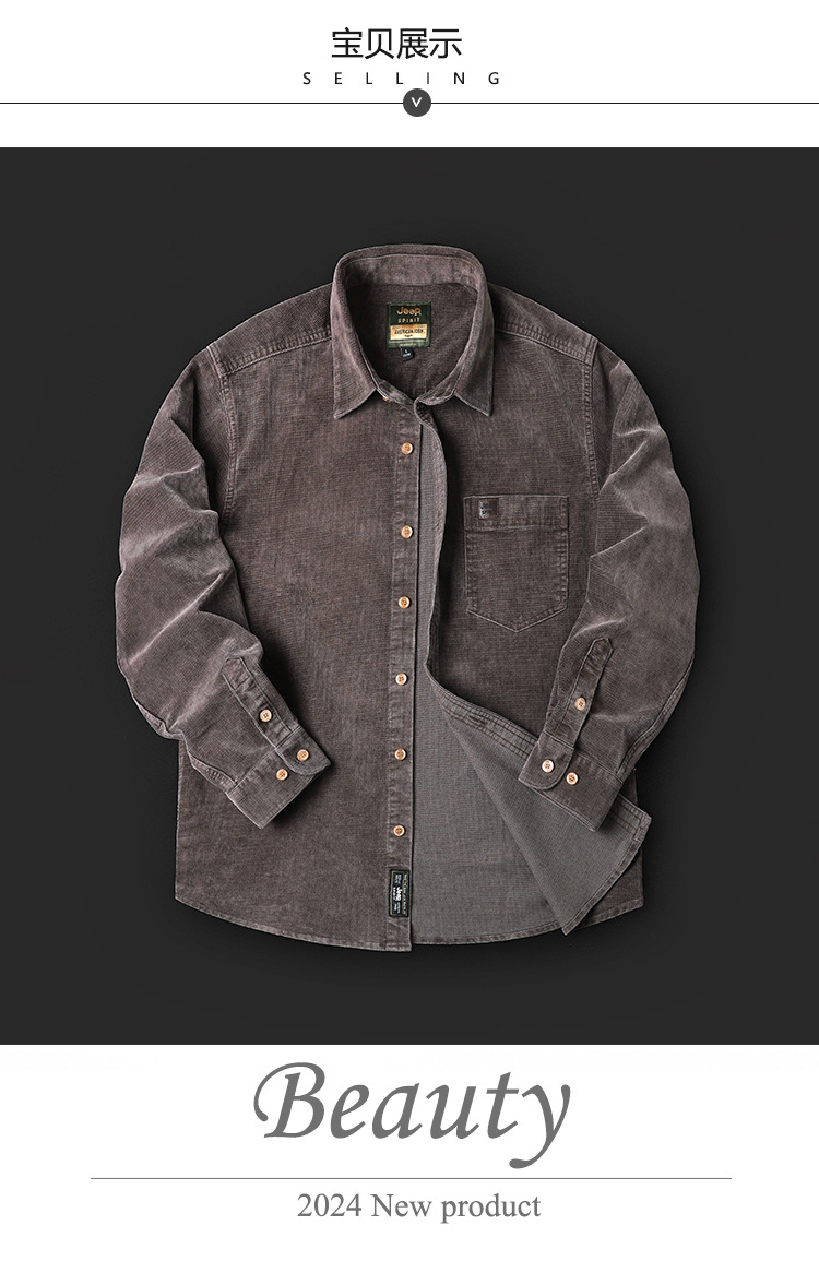 가을과 겨울 남성 코듀로이 셔츠 느슨한 단색 패션 캐주얼 탑 버튼 긴 소매 두꺼운 2080스토어 가기