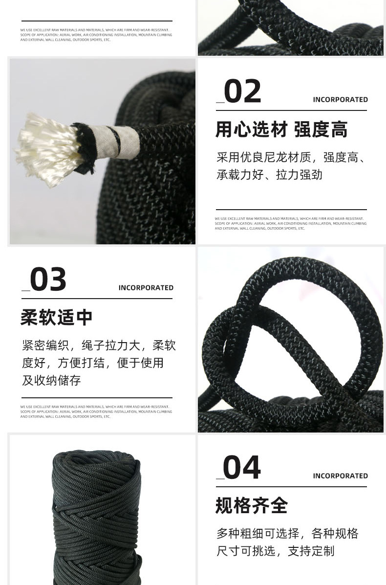 폴리 에스테르 로프 짠 로프 고강도 폴리 에스테르 안전 로프 야외 공중 작업 로프 암벽 등반 로프 야외 암벽 등반 로프