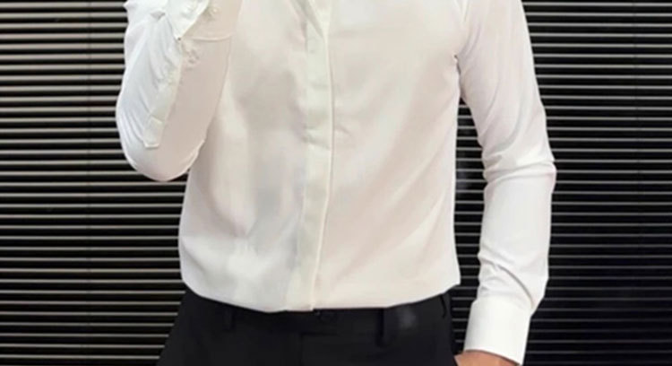 새로운 중국 스타일 수직 칼라 하이 엔드 긴팔 셔츠 남성 비즈니스 캐주얼 세트 간단한 올 매치 화이트 셔츠스토어 가기