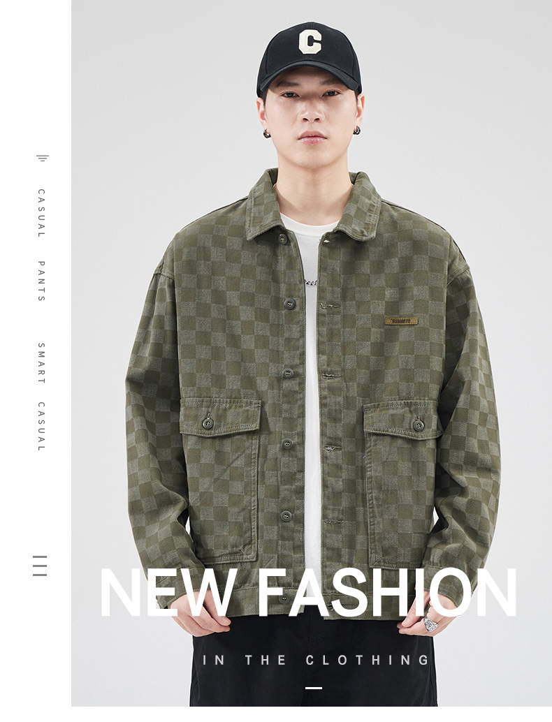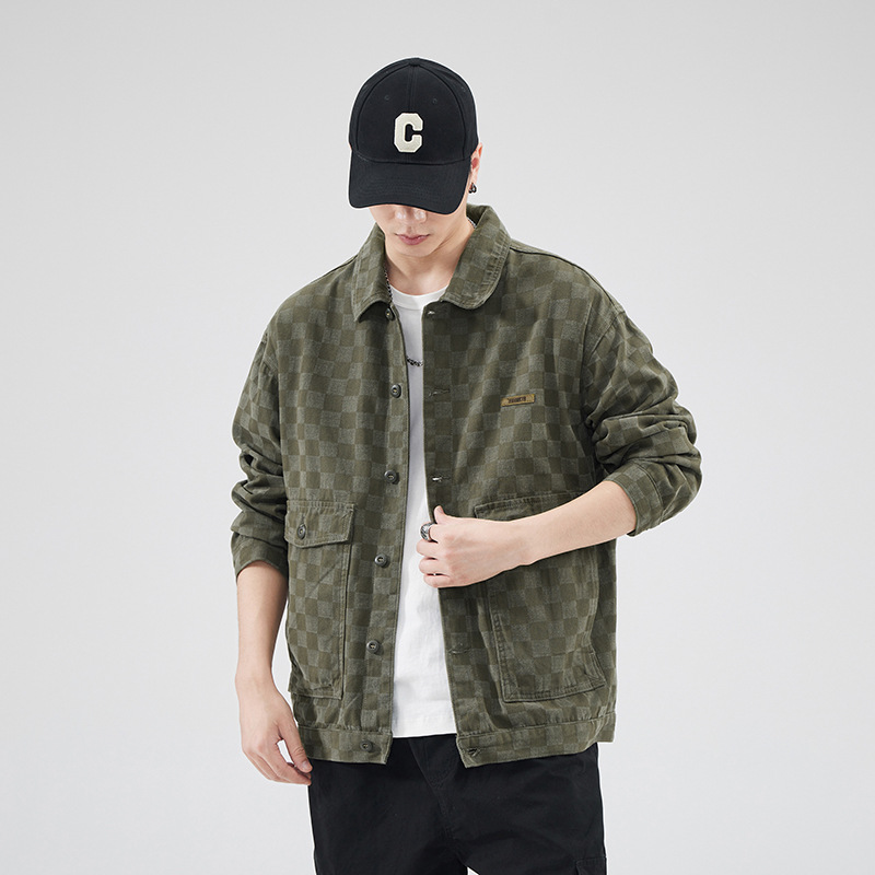 순수 코튼 플레이드 재킷 봄과 가을 새로운 남성 패션 올 매치 느슨한 긴 소매 재킷 유행 유행 유행 유행 브랜드 남성 탑스토어 가기