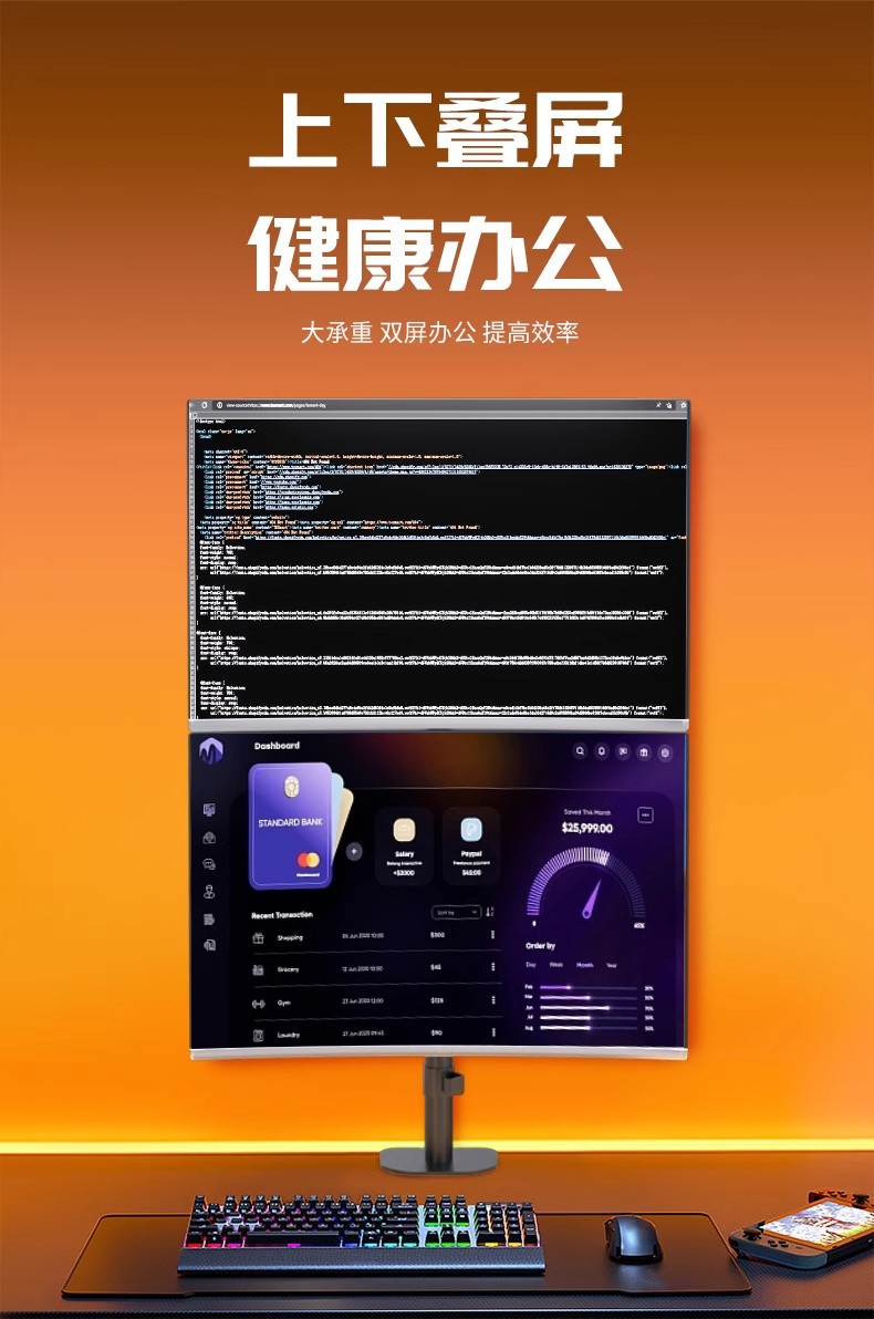 디스플레이 브래킷 듀얼 스크린 상부 및 하부 데스크탑 컴퓨터 데스크탑 상승 브래킷 기계식 캔틸레버 회전 32 인치