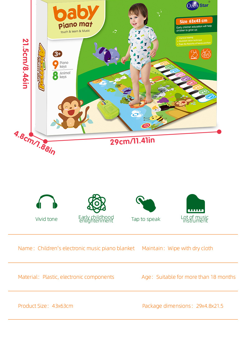 Xin Libao 어린이 교육 음악 담요 피부 친화적 인 발 피아노 카펫 아기 관심 재배 부모-어린이 대화 형 장난감