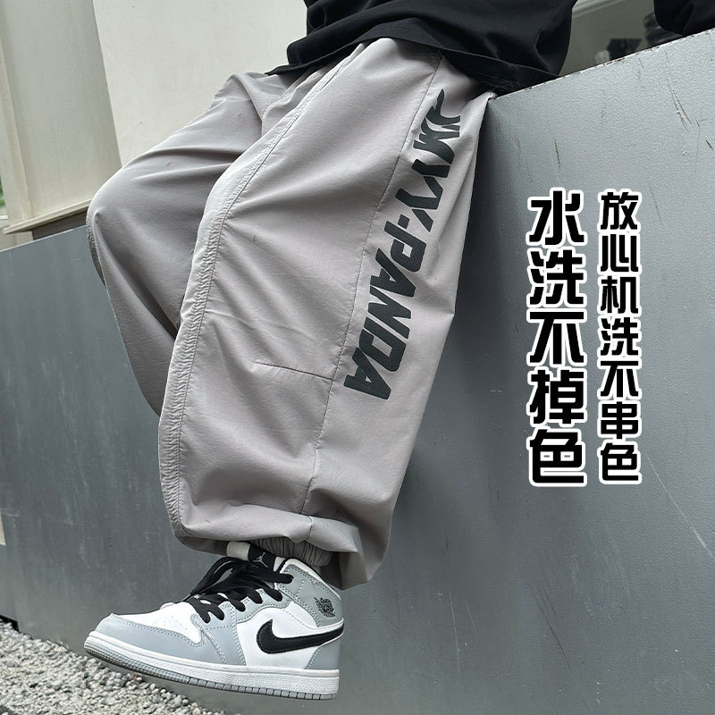 Huzhou Zhili 아동복 어린이 가을 착용 빠른 건조 스포츠 바지 가을 2024 국경 뉴 보이즈 와이드 레그 크로브웨어 바지스토어 가기