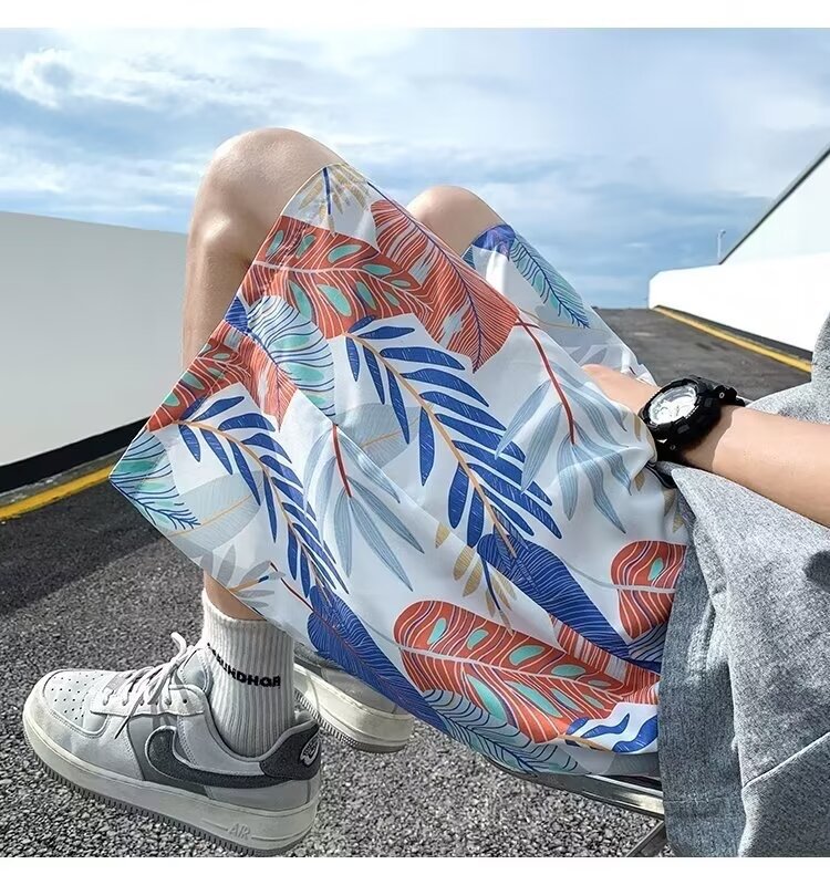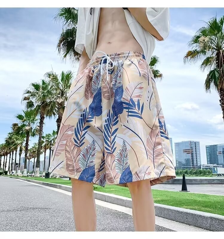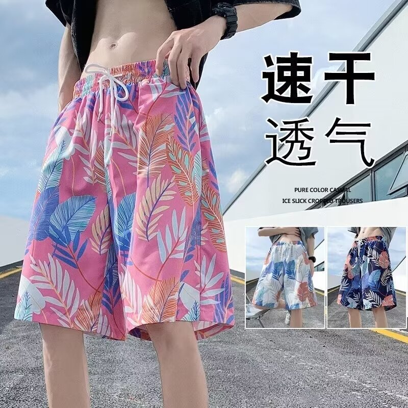 해변 반바지 남자의 여름 얇은 빠른 건조 수영 트렁크 유행 인쇄 된 남자의 큰 바지 느슨한 캐주얼 절반 길이 바지스토어 가기