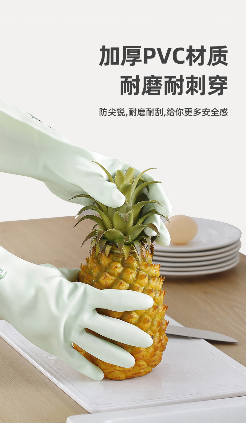 고무 장갑 여성 작업 두꺼운 내구성 긴 청소 및 방수 세탁 주방 식기 세척 장갑 가정용 기모