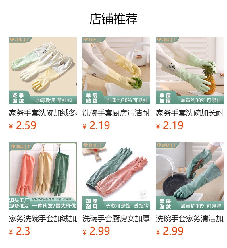 고무 장갑 여성 작업 두꺼운 내구성 긴 청소 및 방수 세탁 주방 식기 세척 장갑 가정용 기모스토어 가기
