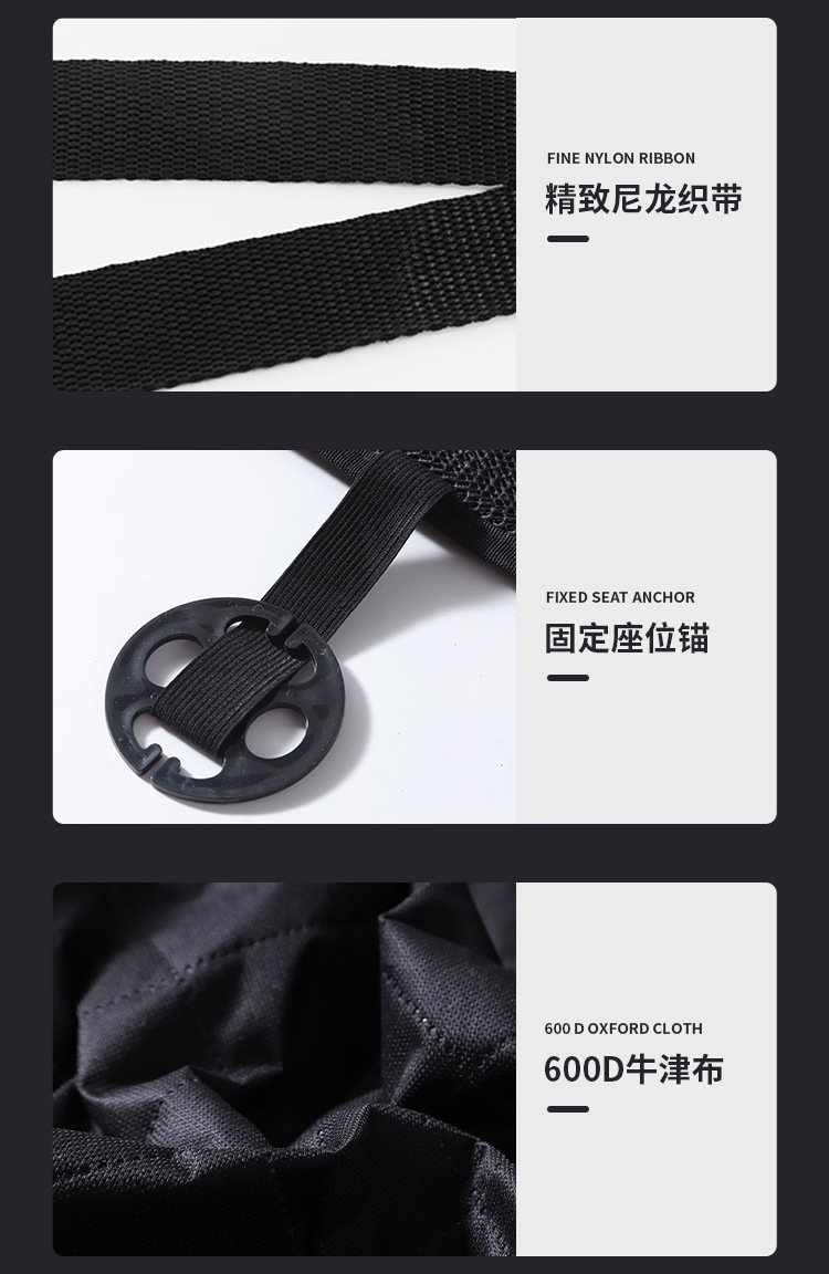 材质:600D牛津布+PP棉+210D里布+PVC滴塑防滑网