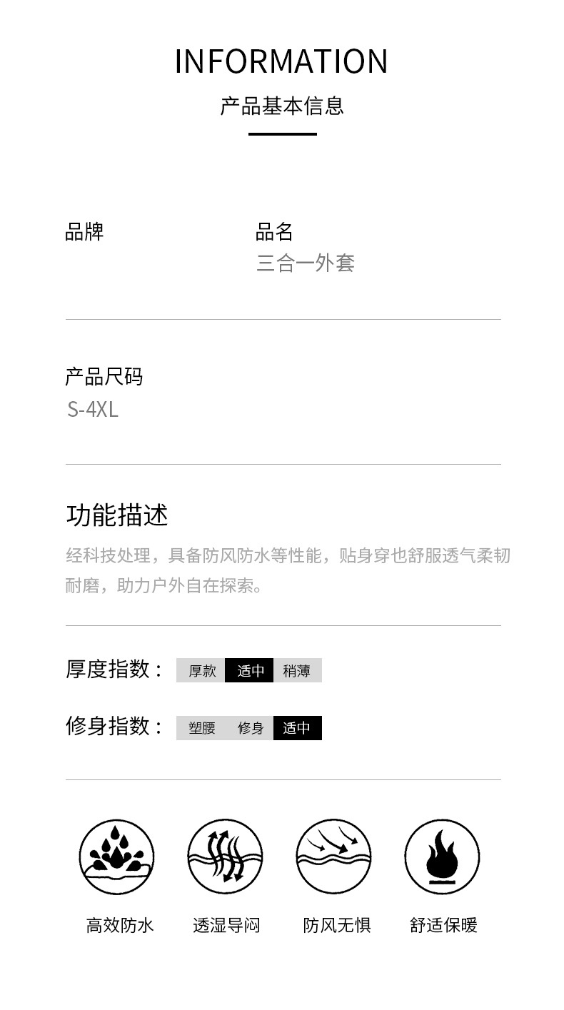 여성용 안티 스플래싱 3 대 1 등산 세트 남성용 중간 길이의 냉장 의류 이동식 따뜻한 작업복 새 스타일