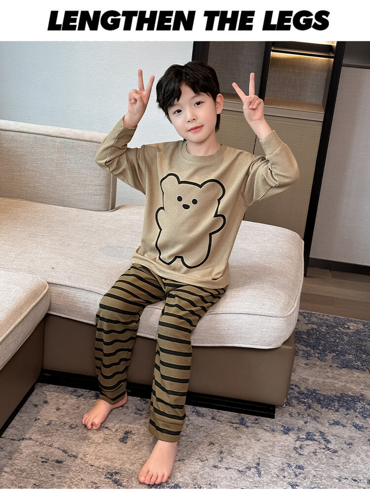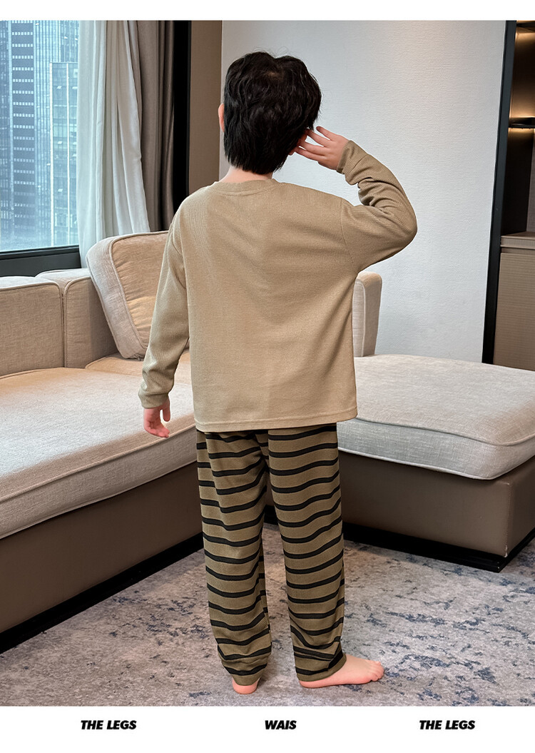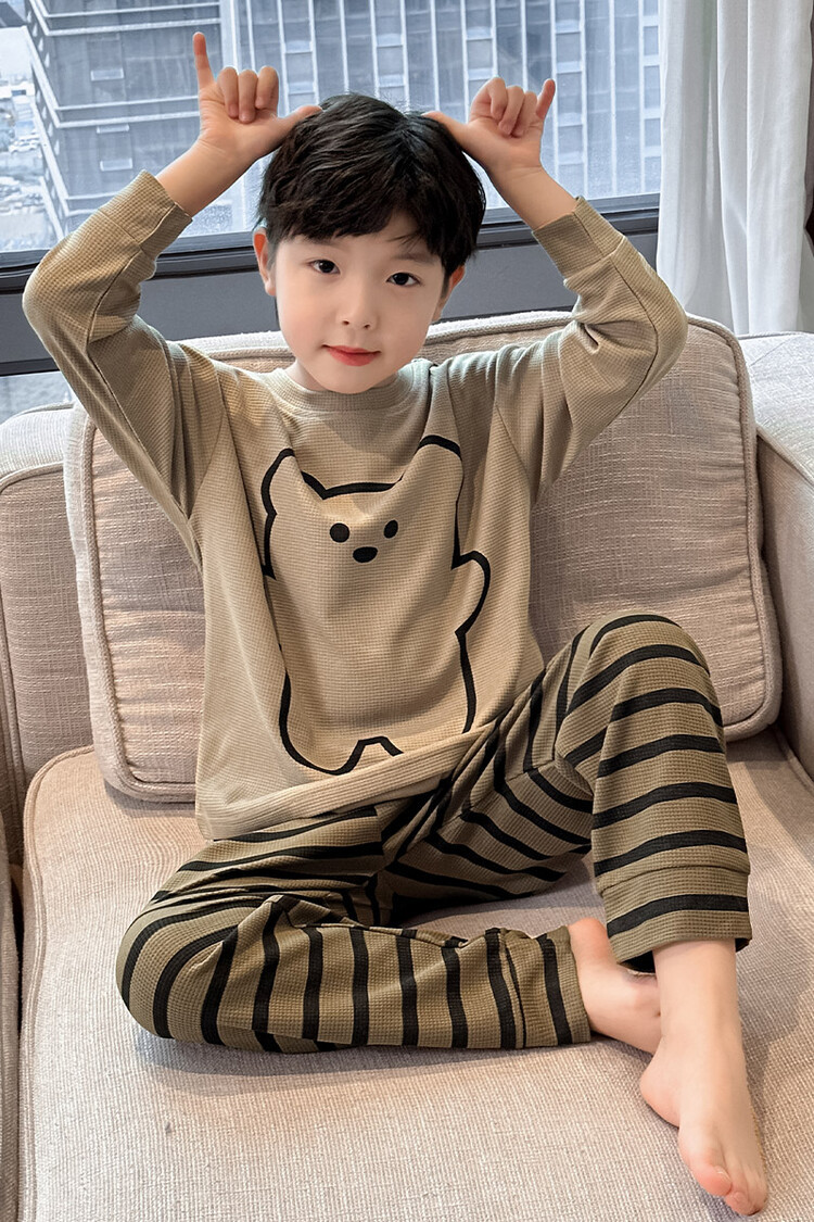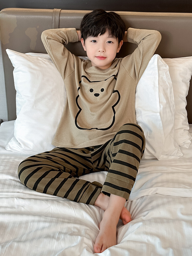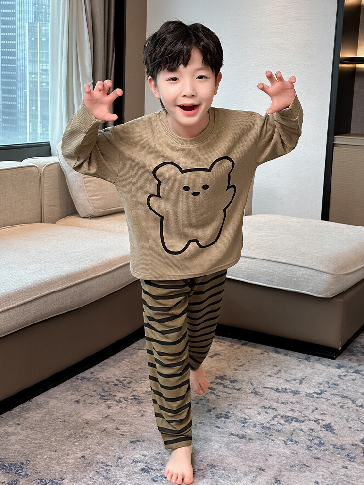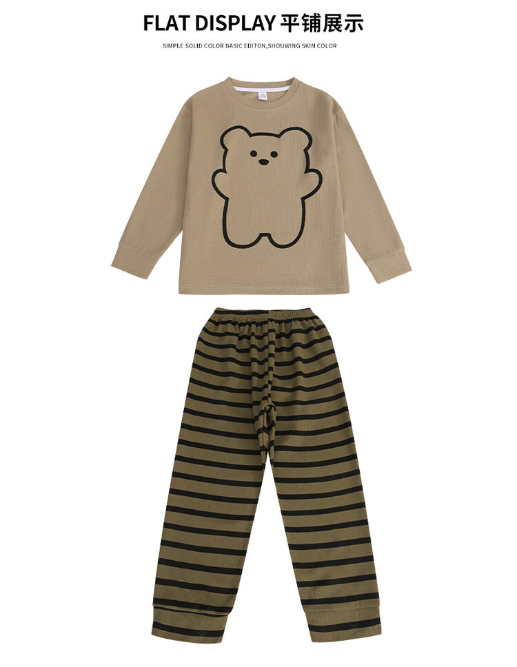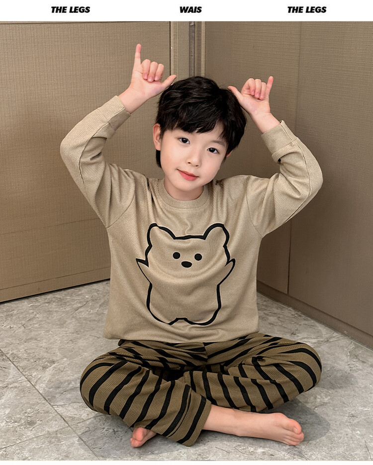 소년 만화 홈 옷 어린이 줄무늬 파자마 바지 2024 새로운 어린이 캐주얼 긴 소매 와플 파자마 세트