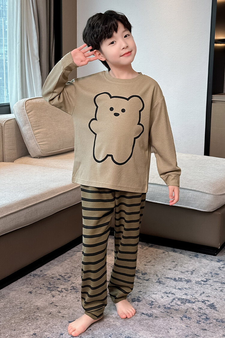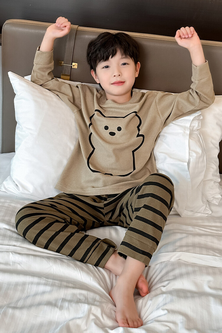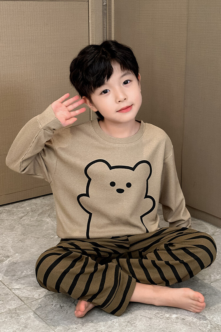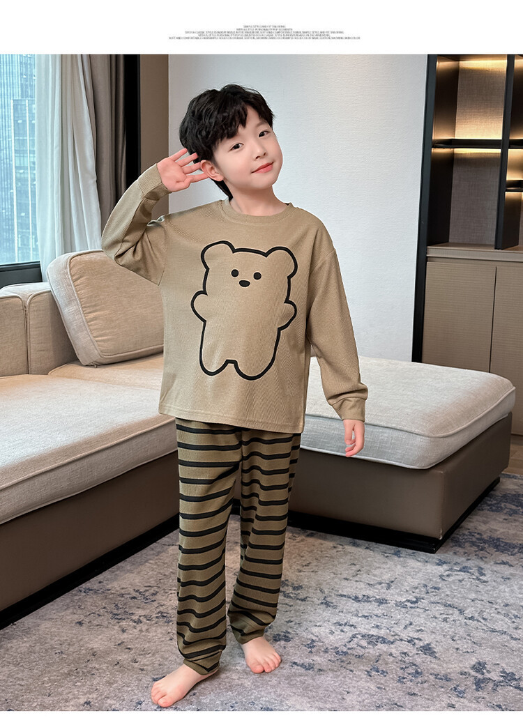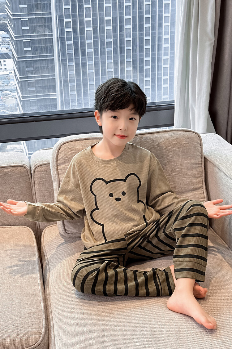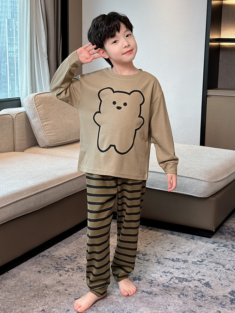 소년 만화 홈 옷 어린이 줄무늬 파자마 바지 2024 새로운 어린이 캐주얼 긴 소매 와플 파자마 세트