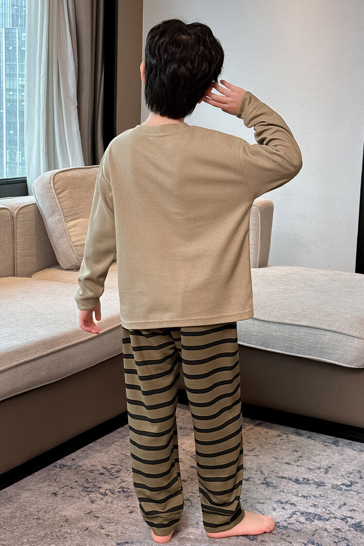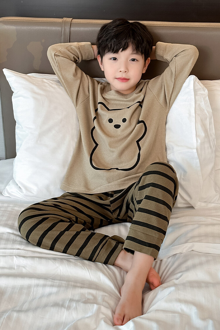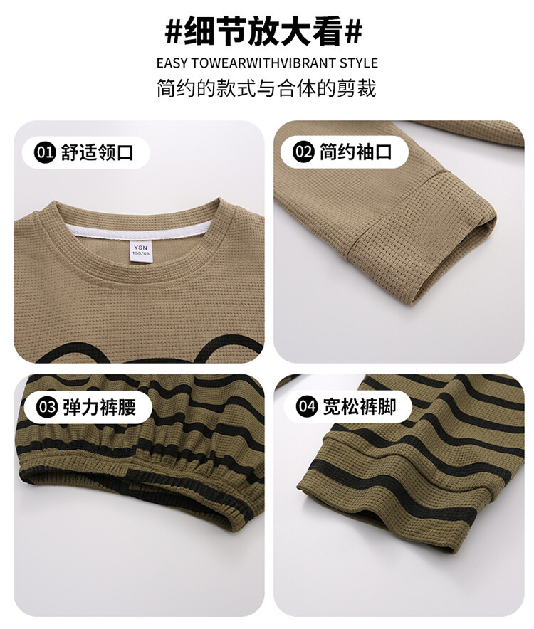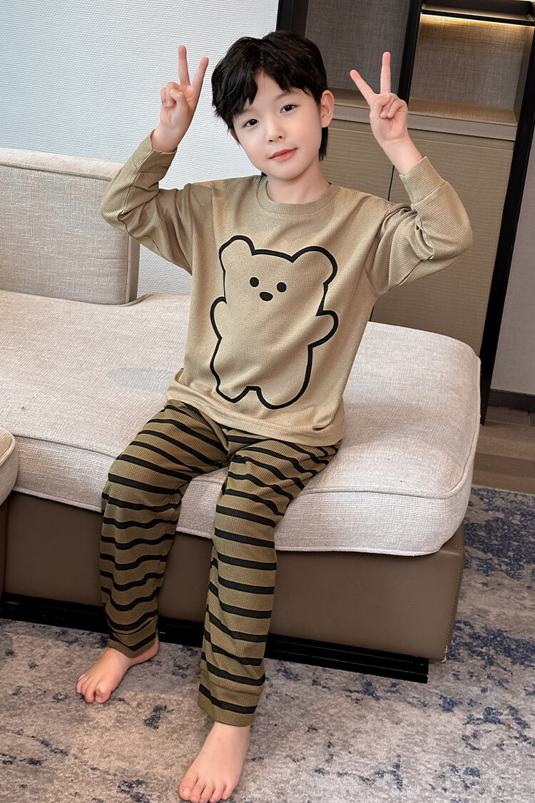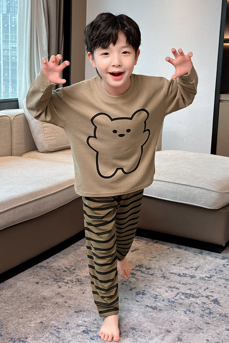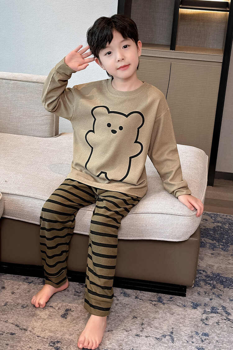 소년 만화 홈 옷 어린이 줄무늬 파자마 바지 2024 새로운 어린이 캐주얼 긴 소매 와플 파자마 세트