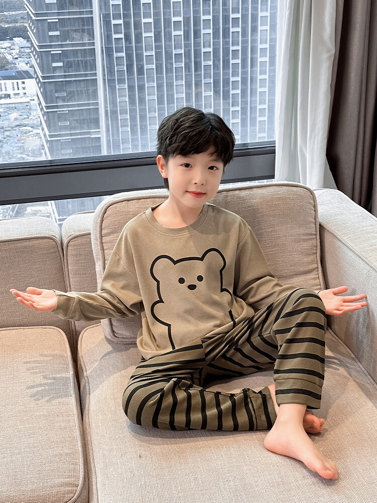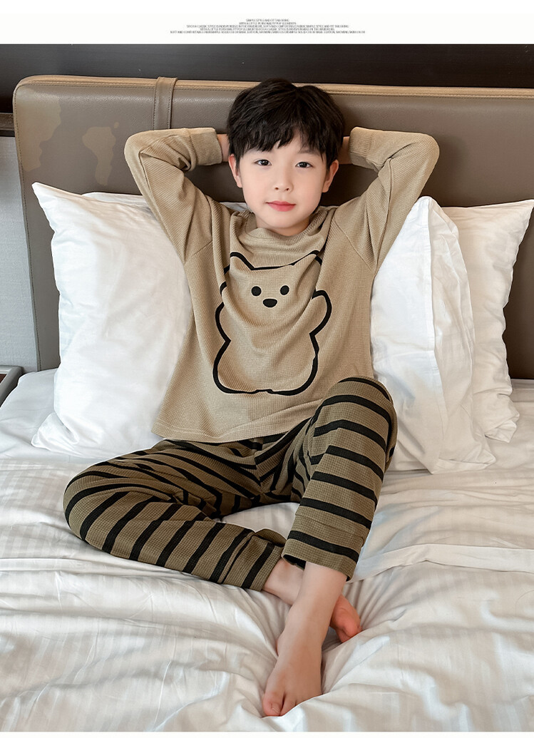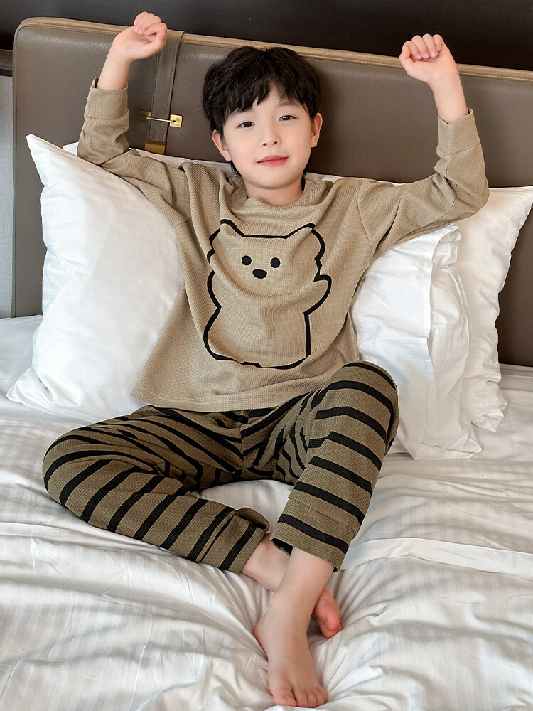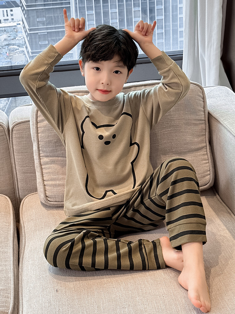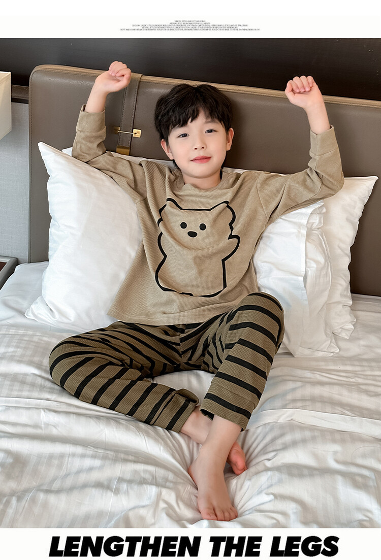 소년 만화 홈 옷 어린이 줄무늬 파자마 바지 2024 새로운 어린이 캐주얼 긴 소매 와플 파자마 세트스토어 가기