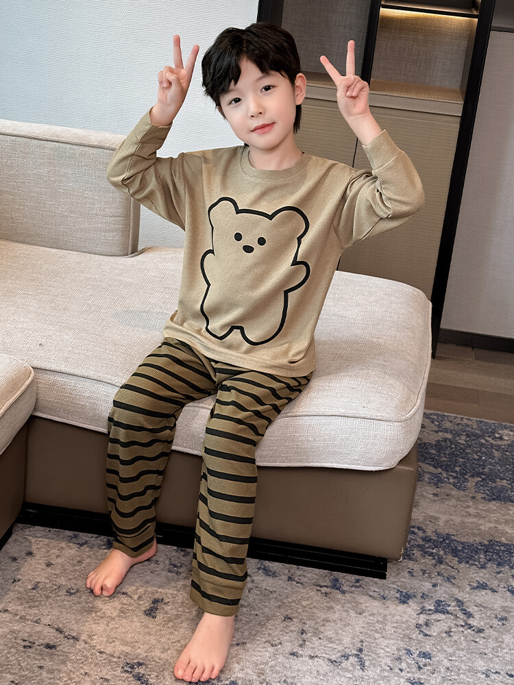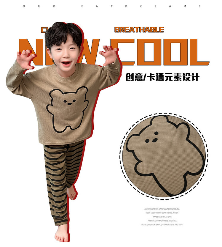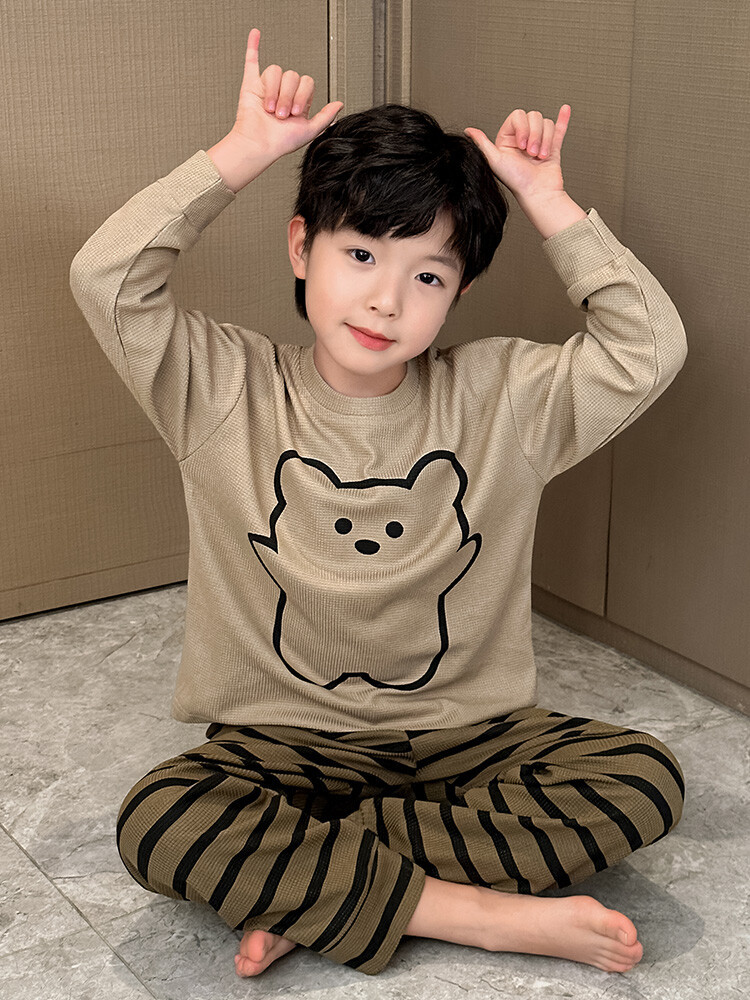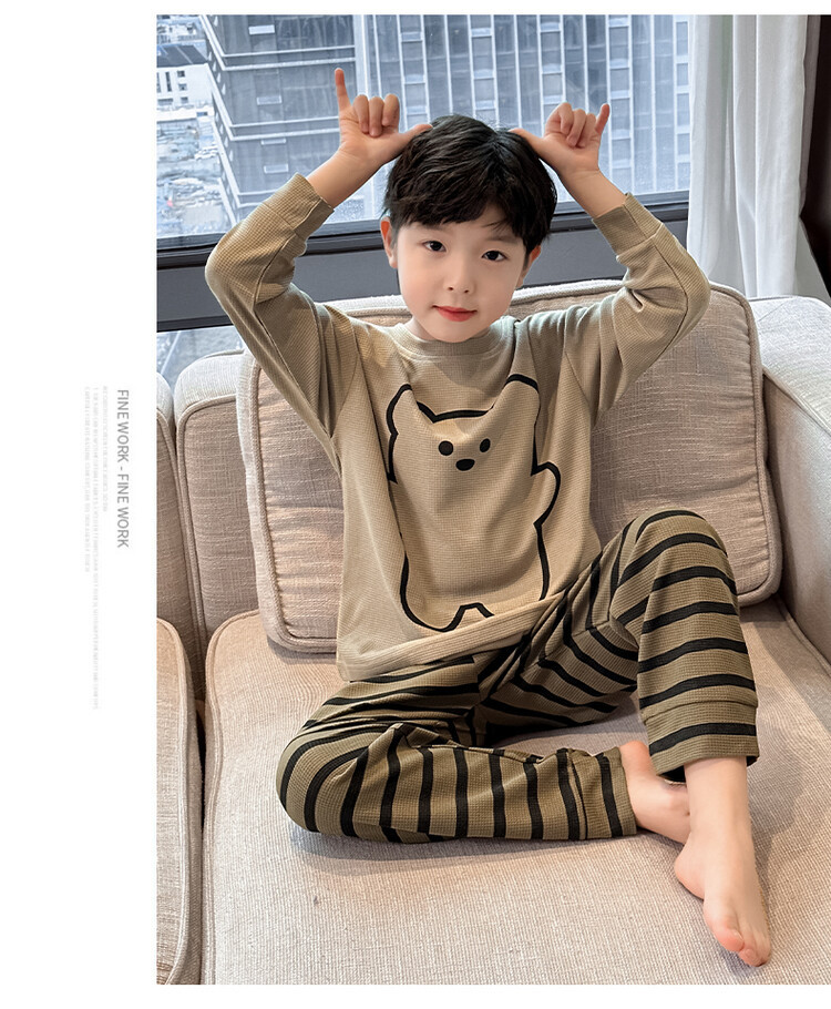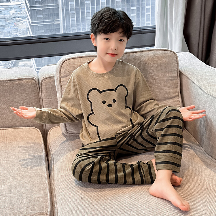소년 만화 홈 옷 어린이 줄무늬 파자마 바지 2024 새로운 어린이 캐주얼 긴 소매 와플 파자마 세트스토어 가기