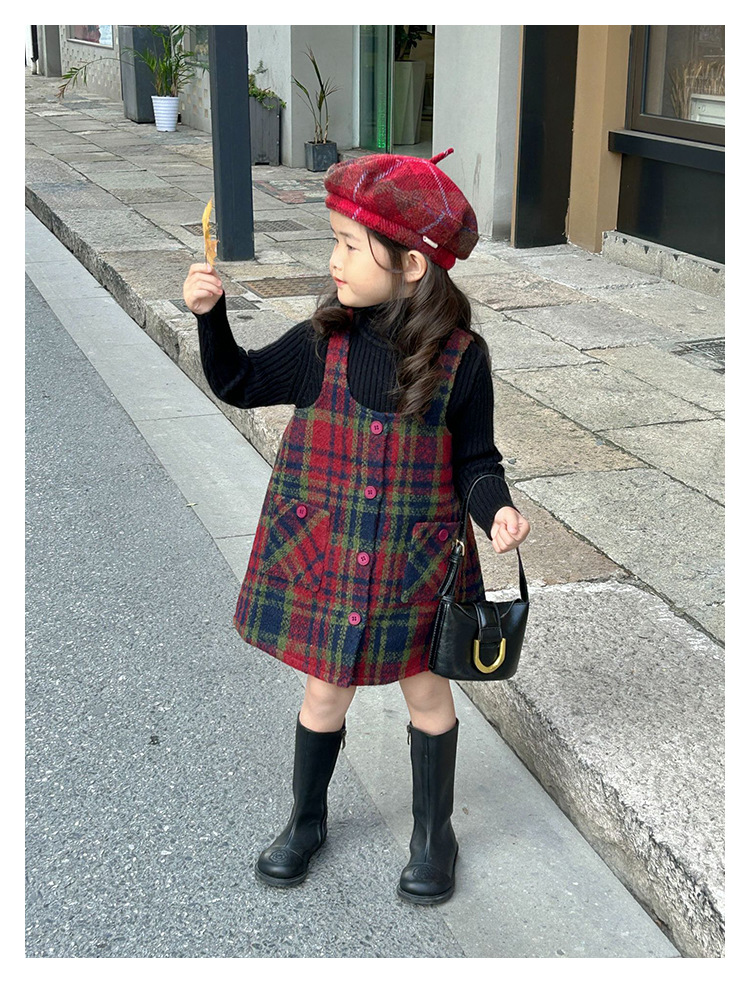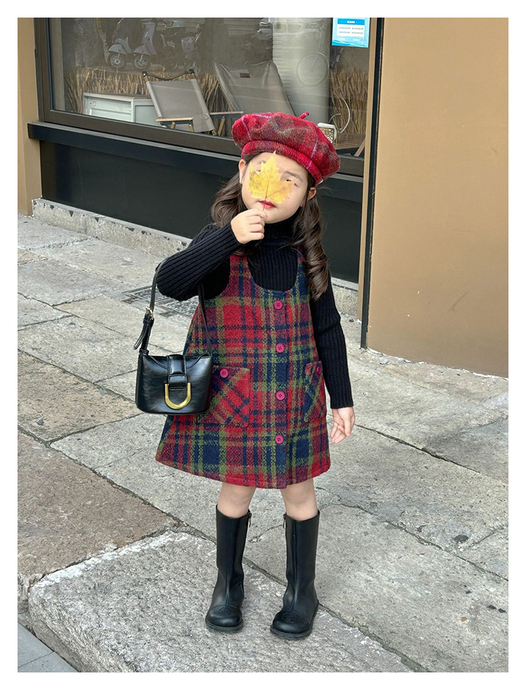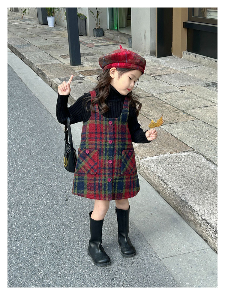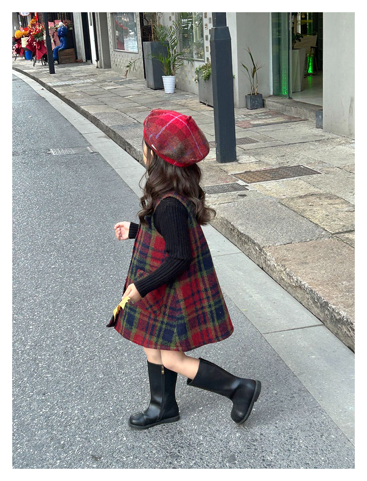 어린이 착용 2024 소녀 봄과 가을 격자 무늬 모직 조끼 스커트 어린이 아기 한국 스타일 귀여운 달콤한 원피스스토어 가기