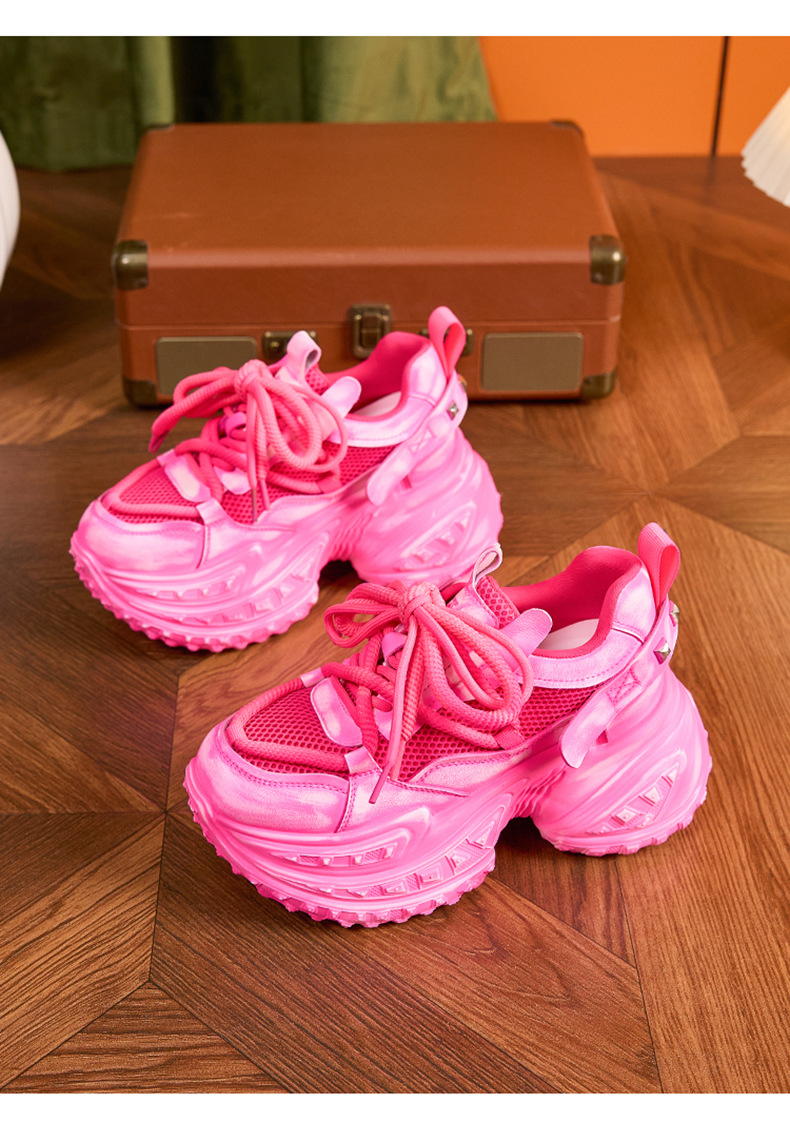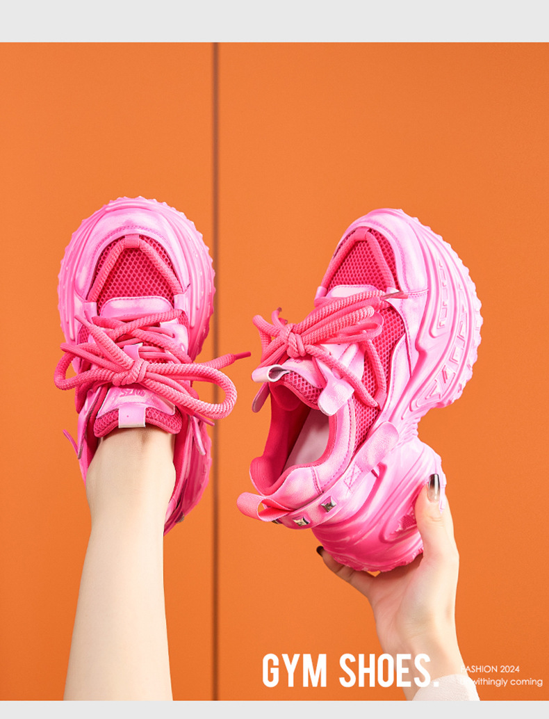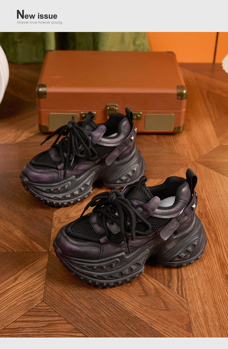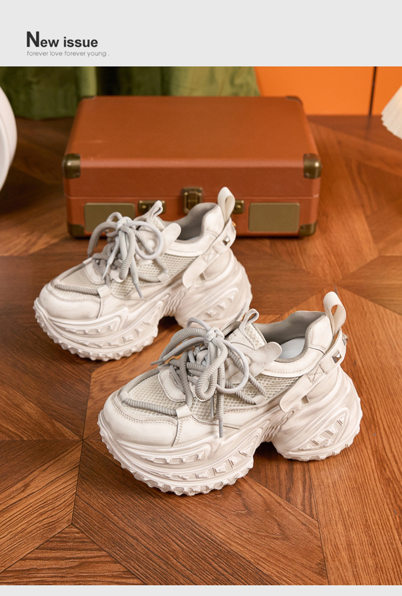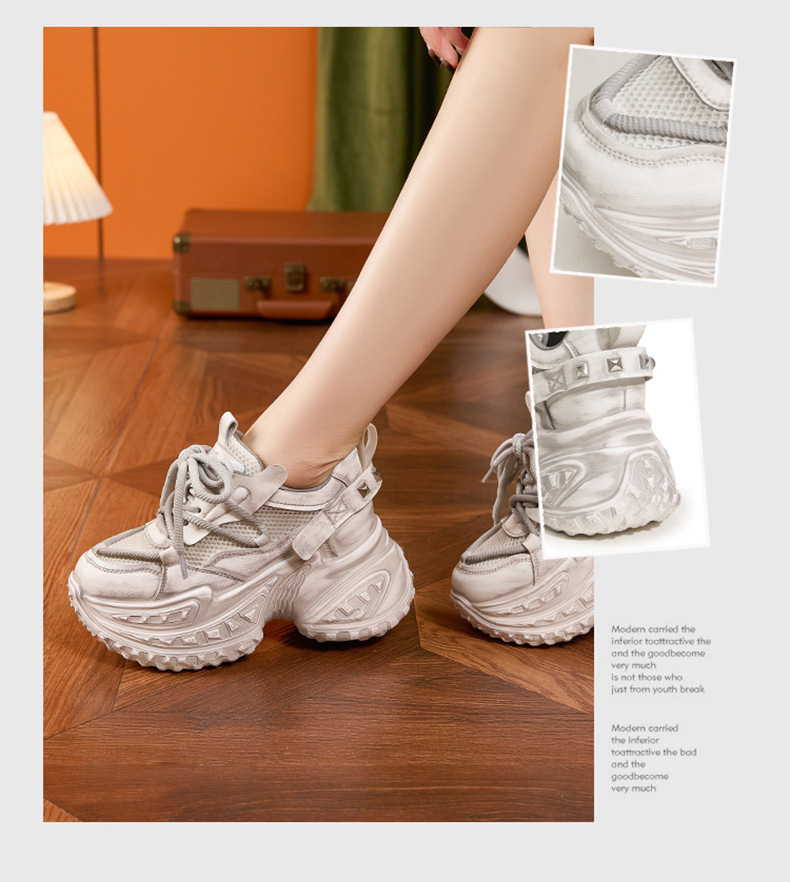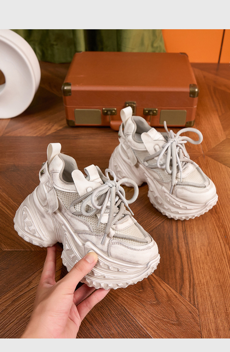 두꺼운 밑창의 여성용 아빠 신발 2025 봄 신상 레트로 캐주얼 운동화 패션 다용도 키높이 여성 신발